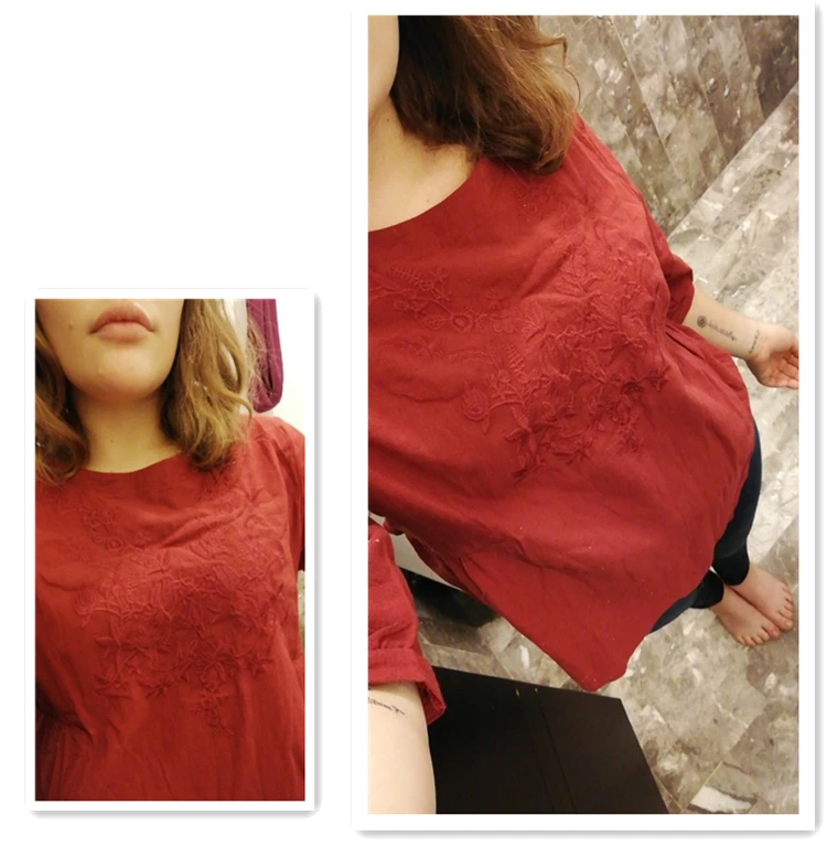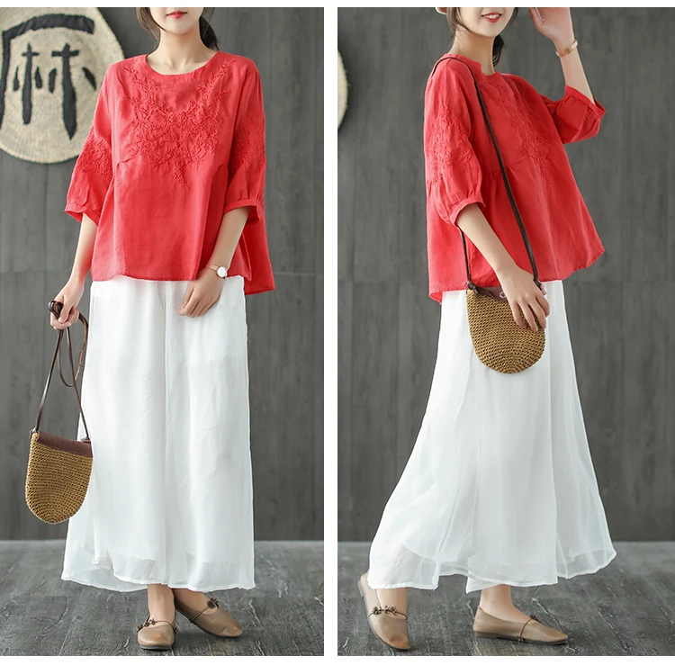 Женская блузка, размера плюс хлопковая туника, вышитые блузки женские топы с круглым вырезом, Повседневная