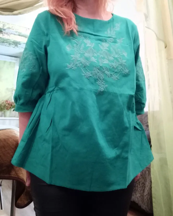 Блузочка мне понравилась! Свободная, цвет приятный, ткань плотная, не летняя! Вообщем довольна!