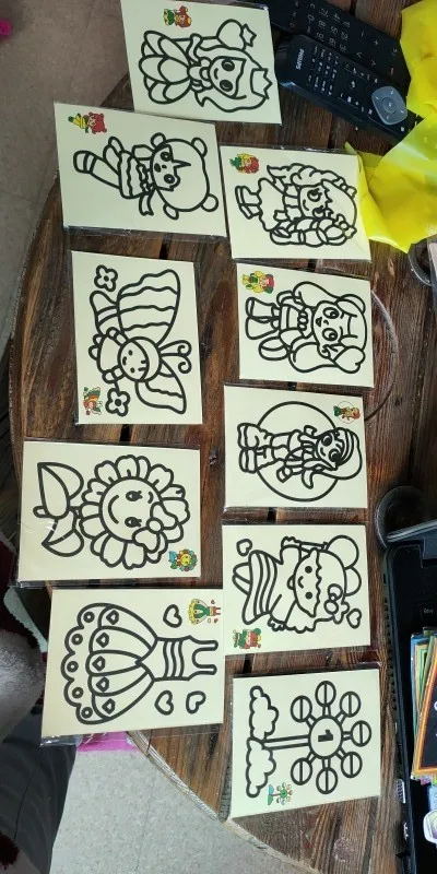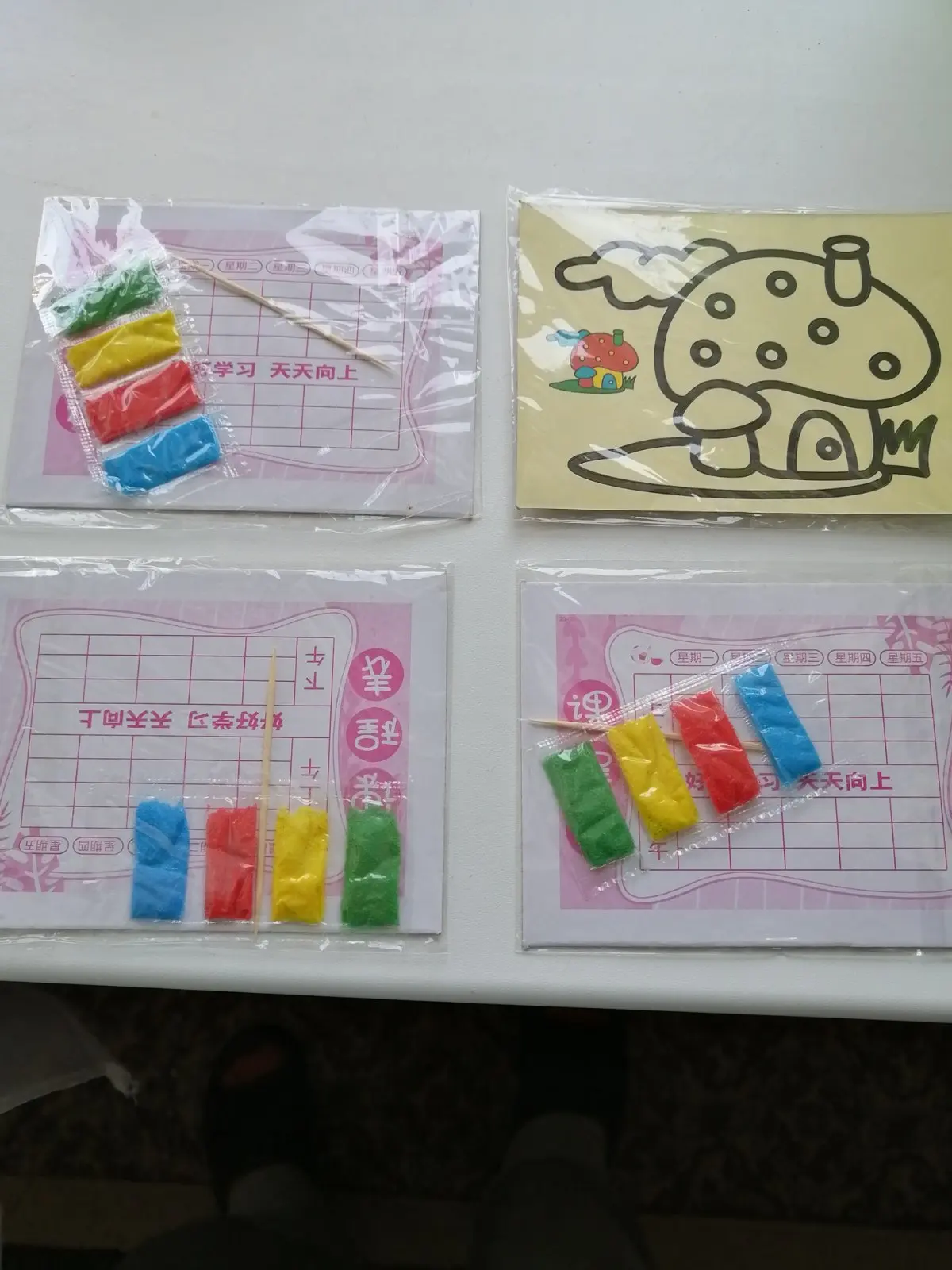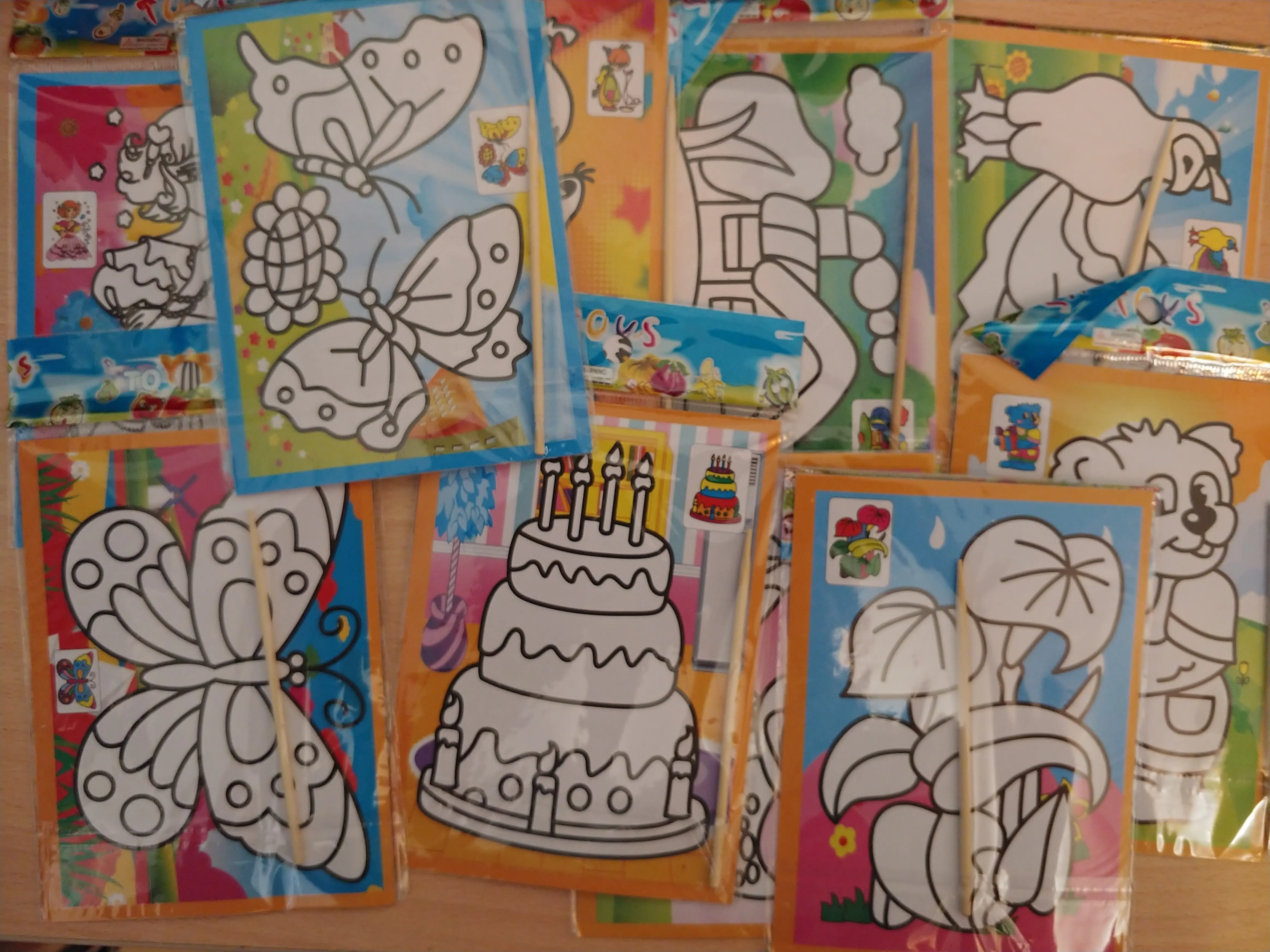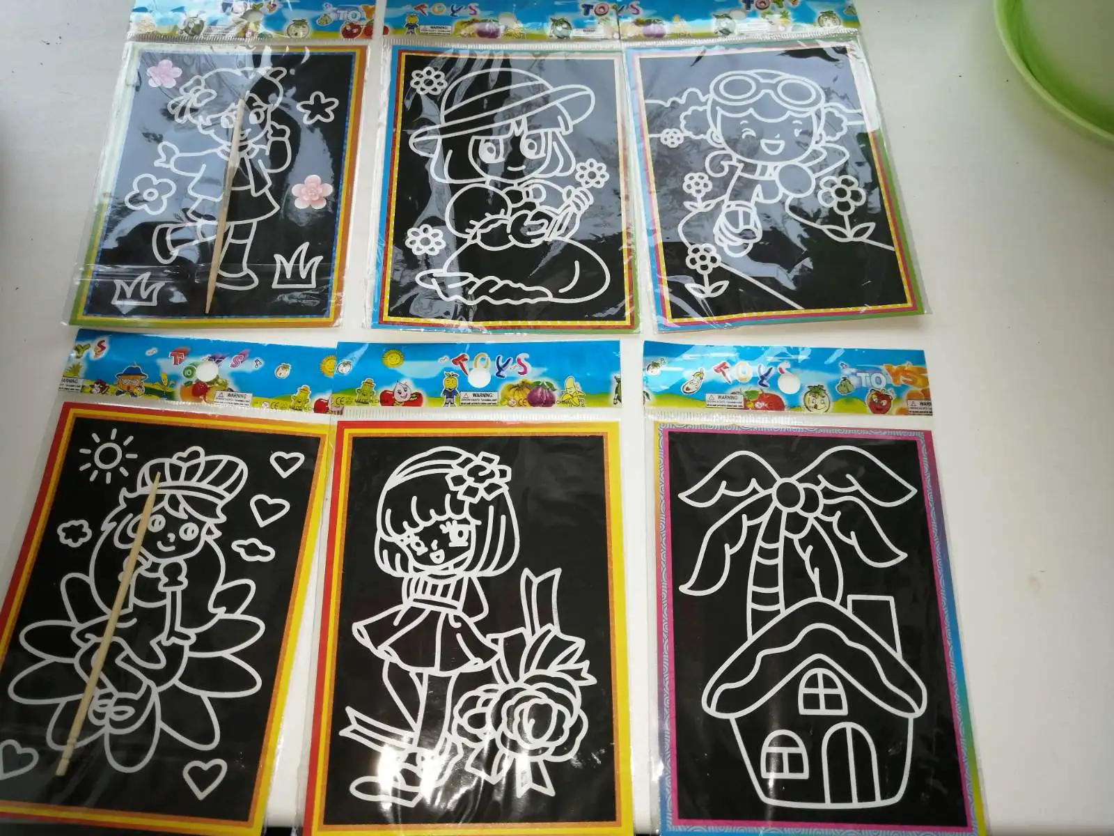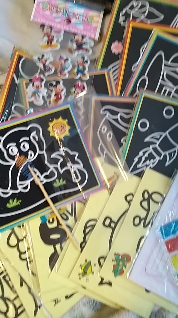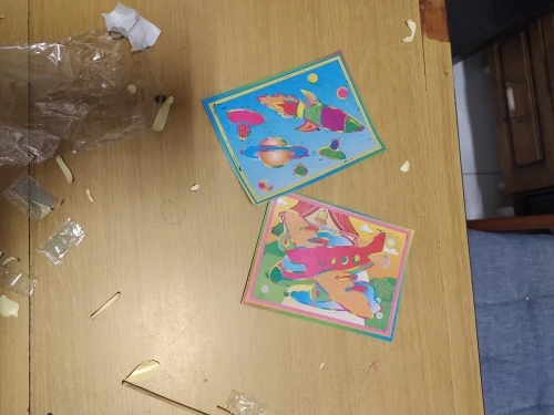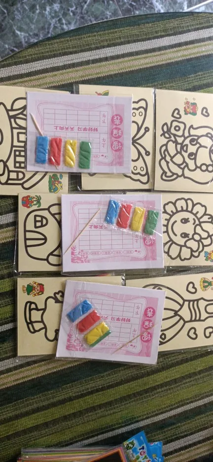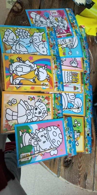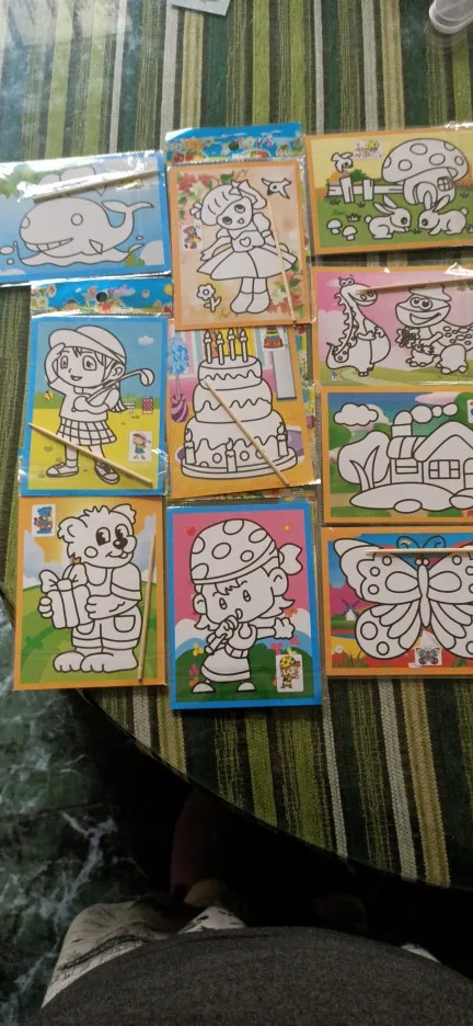 рекомендую скретчи и рисунки песком для деток. отличный вариант для занятия дома. Рисуночки небольшого размера, но для деток - самое то. Быстро сделал один рисунок и доволен результатом. Песочек отлично прилипает в нужном месте, всё держится крепко. рисунки простые, но в маленьком возрасте сложные рисунки не нужны. Скретч рисунки так же отлично забавляют детей. Продавец молодец, товар отличный. рекомендую.