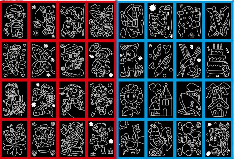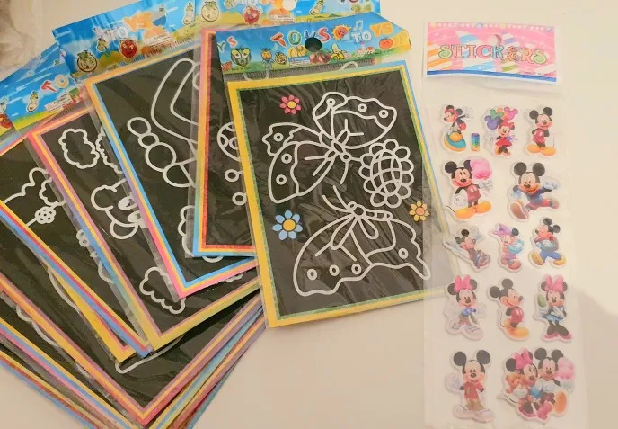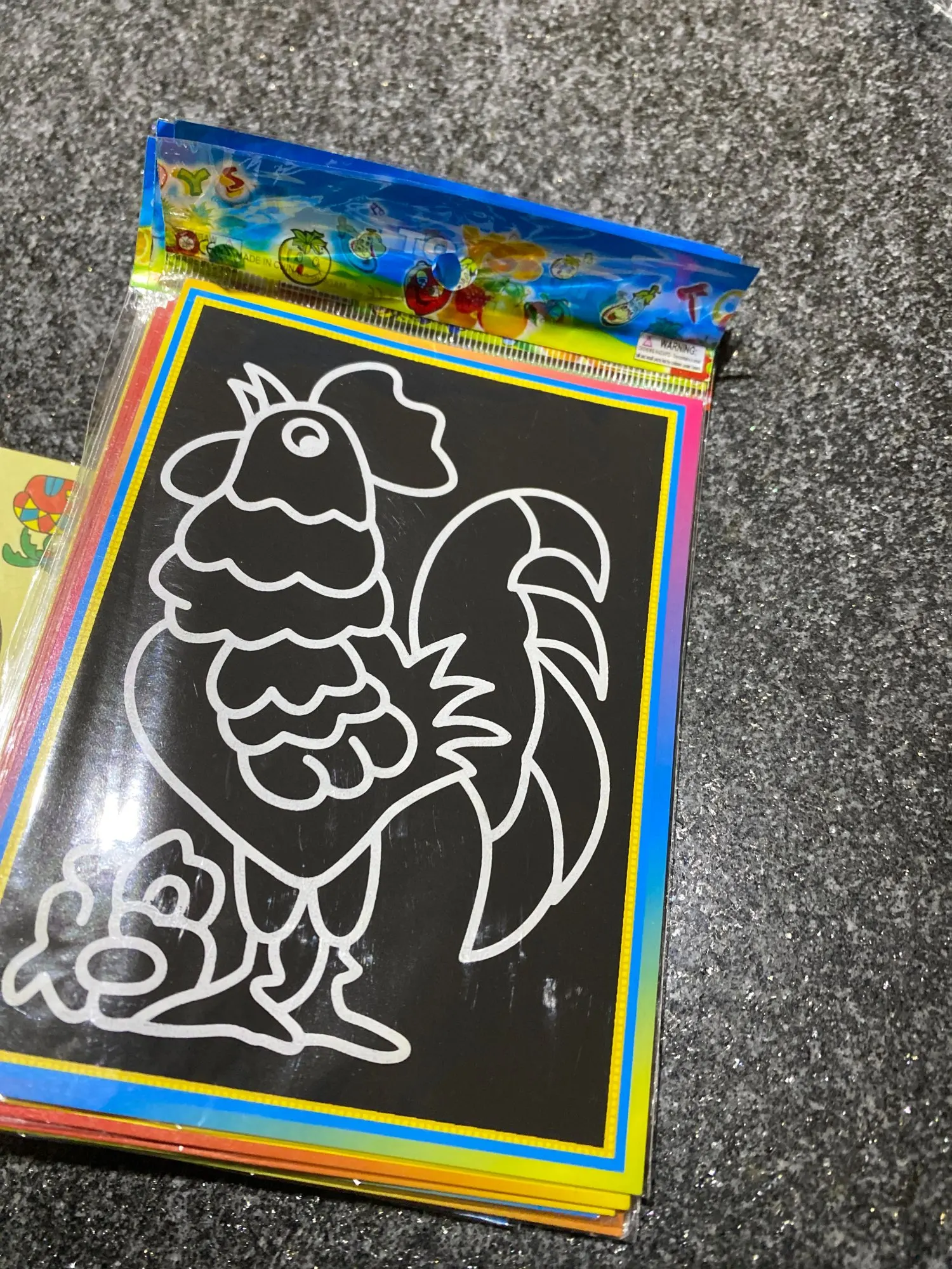 Маленькие картинки, ребёнку нравиться. С радостью раскрашивается и стирает чёрный слой .