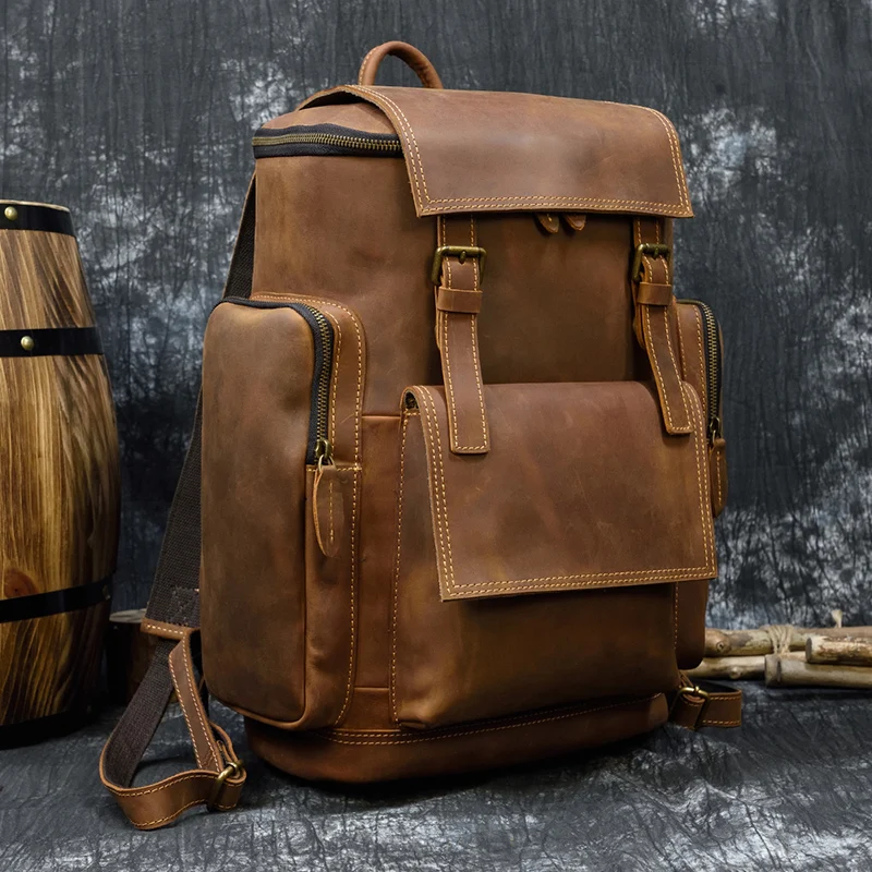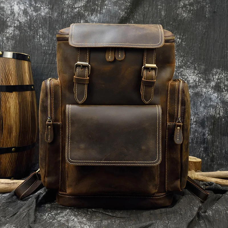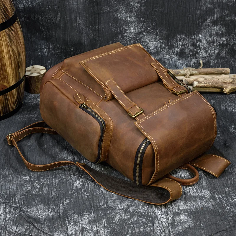 Мужской рюкзак MAHEU из мягкой бычьей кожи, винтажная сумка из натуральной кожи для путешествий и выходных, уличный ранец большого размера