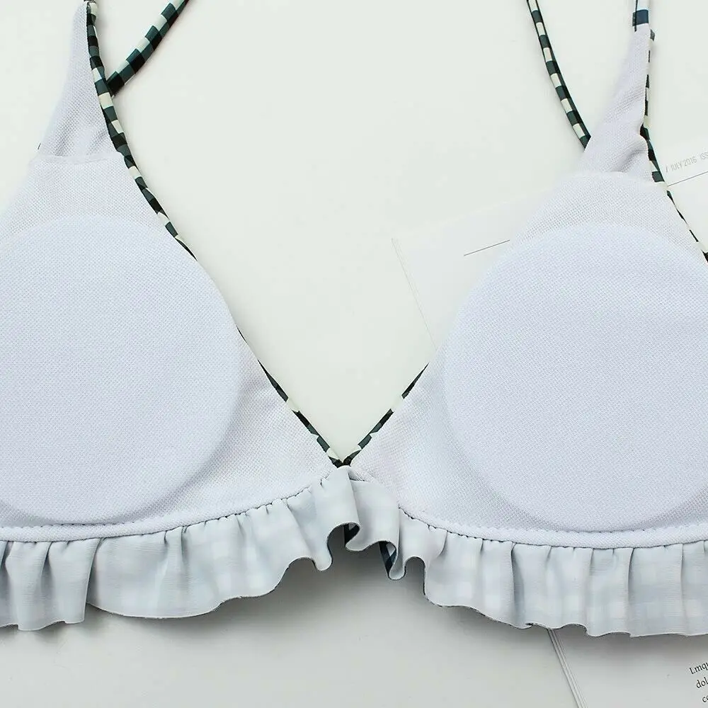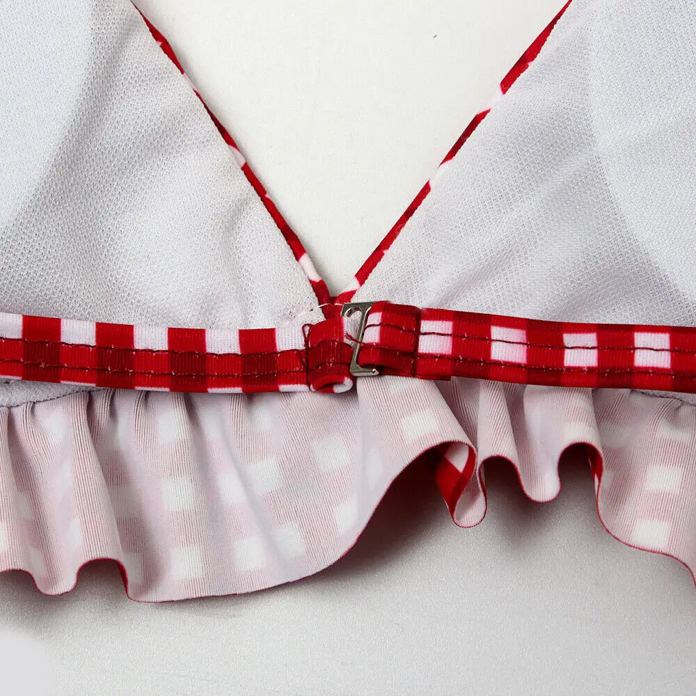 Пикантное бикини в клетку, 2021, красно-зеленый, в клетку, купальники, треугольные Купальники пуш-ап с оборками, пляжная одежда, женские купальники