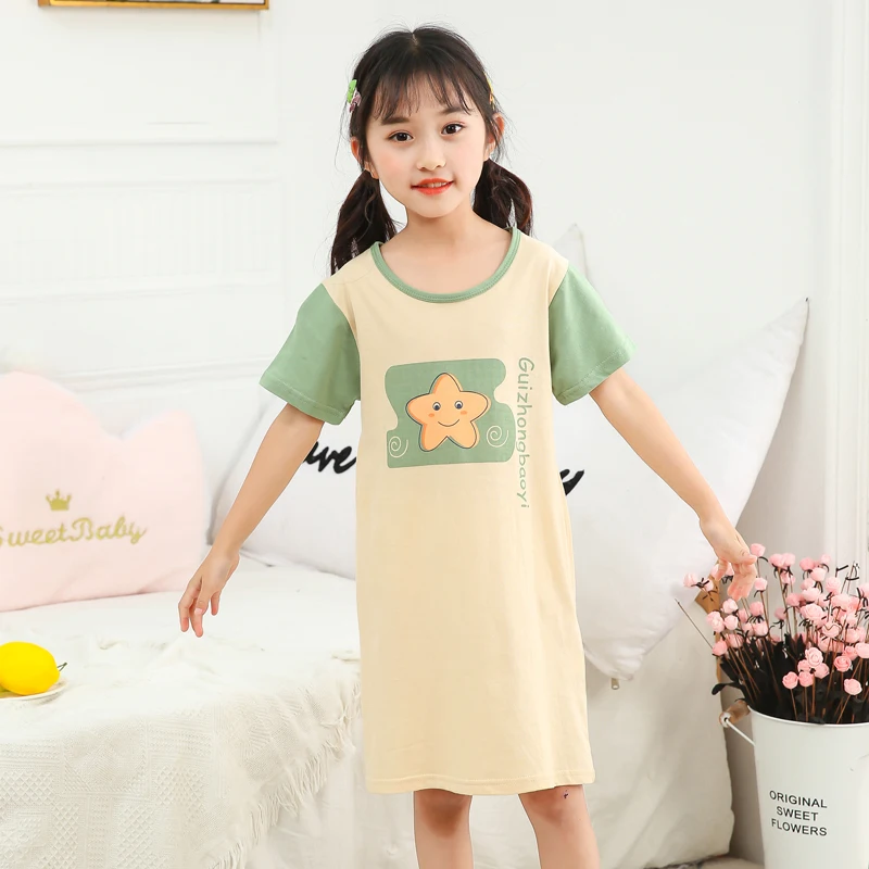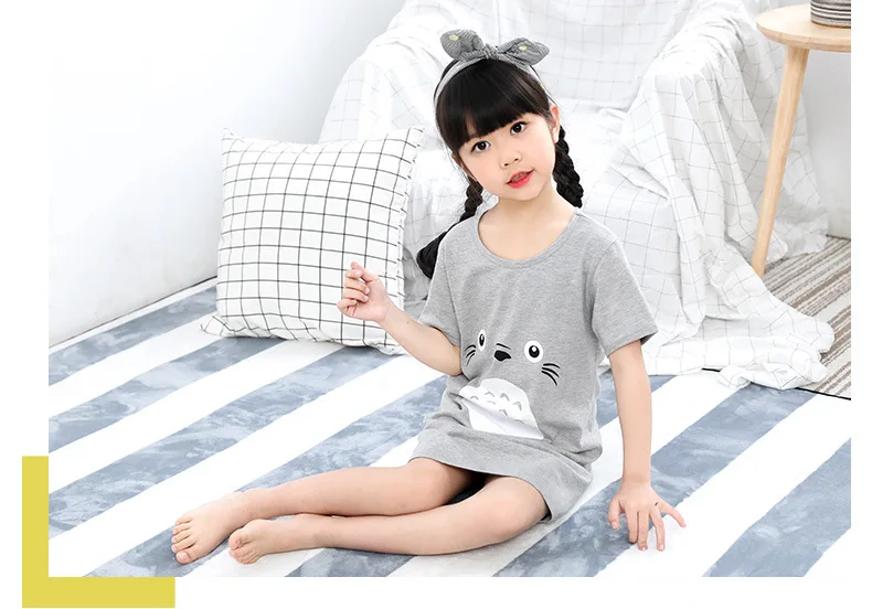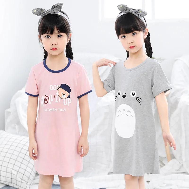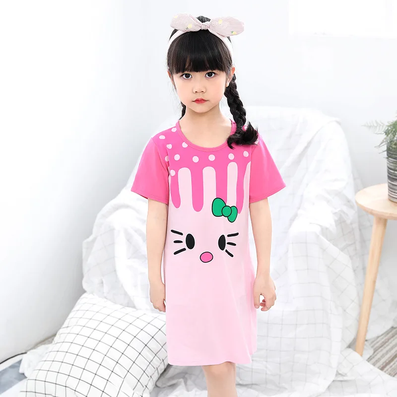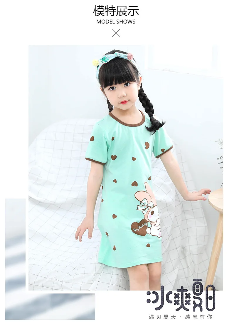 Новая летняя детская одежда для сна для девочек, хлопковое платье с короткими рукавами, пижама для девочек, ночная рубашка большого размера