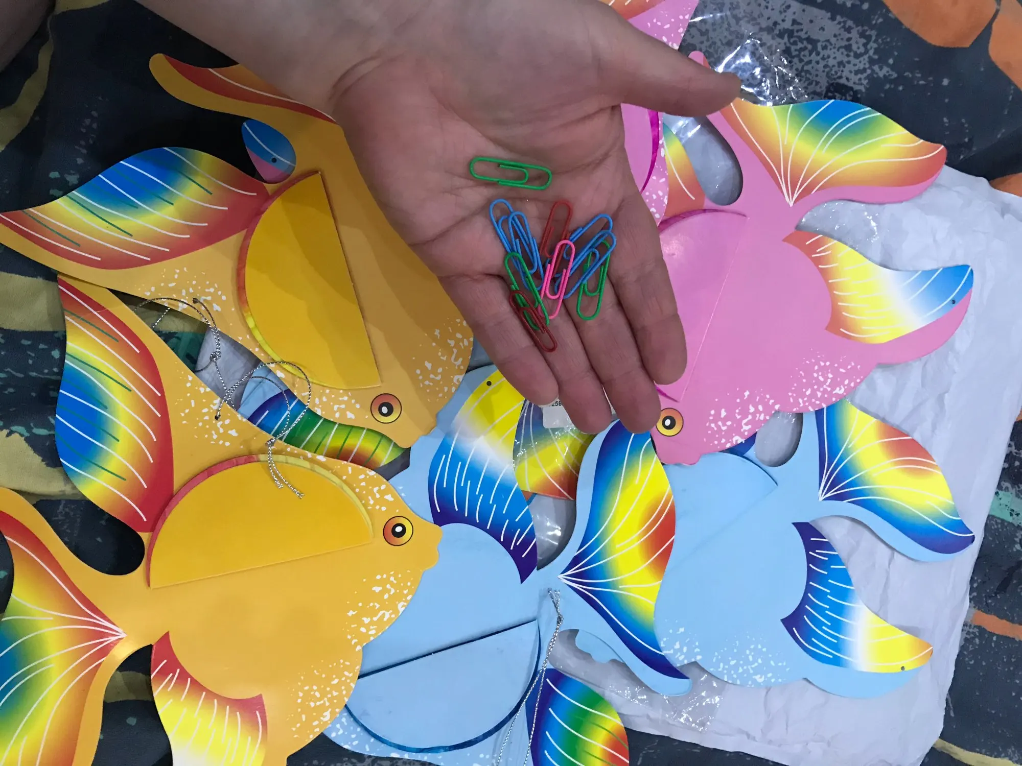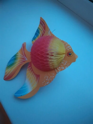 Товар был быстро отправлен и в течении двух недель дошёл до Новосибирска. Был объединён с другими посылками в одну. Это удивило. Рыбки понравились, в комплекте идут цветные скрепки видимо для закрепления сфер. За один заказ 6 рыбок по два цвета.