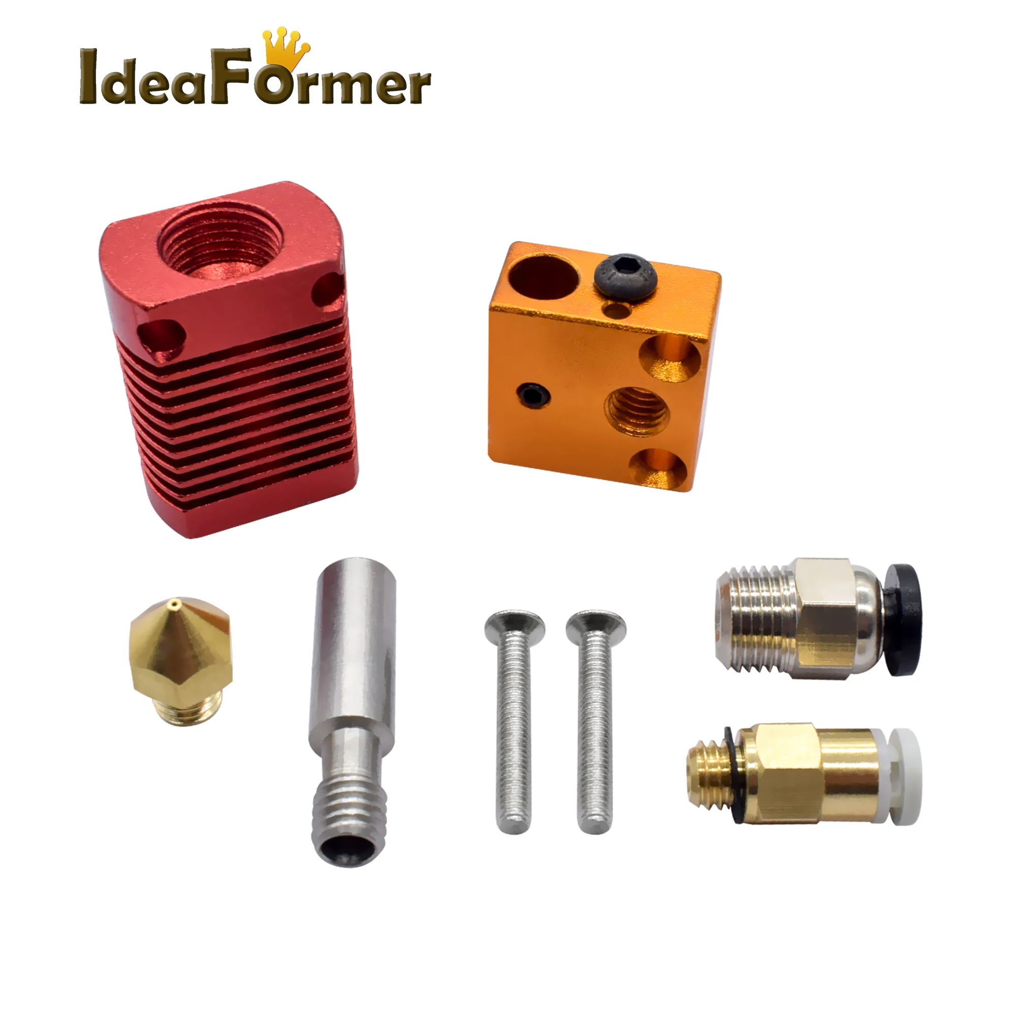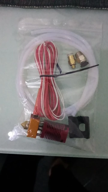 Хороший комплект. Как на картинке. Фторопластовая трубка ну очень большая. Обрезал пополам, на два раза хватит. Фигинги лучше чем были в комплекте с принтером. Блочек качественный, так и не скажешь это алюминий или латунь. Если латунь то превосходно, сопло вкручивал шуруповертом О.О полет нормальный, термобарер с фторопластовой трубкой, прощай пробки от плохо закрученного сопла.