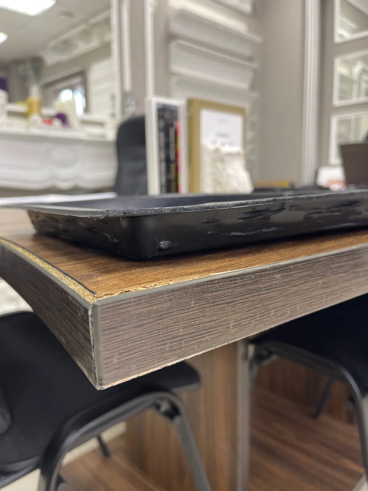 Товар был поврежден на одном углу. Дерево было скошено немного, но металлический угловой кусок был Согнут двумя способами и гвоздь не был безопасным. Проблема в том, что он был так хорошо упакован, что повреждения должны были быть там, прежде чем вы его обернули и отправили. Коробка не была повреждена, поэтому она должна была быть отправлена таким образом. Не крутой. Я попробовал мягко молотить его на месте, но не доволен, что кто-то отправит поврежденный лоток. Я сделал его презентабельным молотком, мягким прикосновением и коричневым маркером, но это не полностью без пятен. В противном случае это симпатичный поднос.