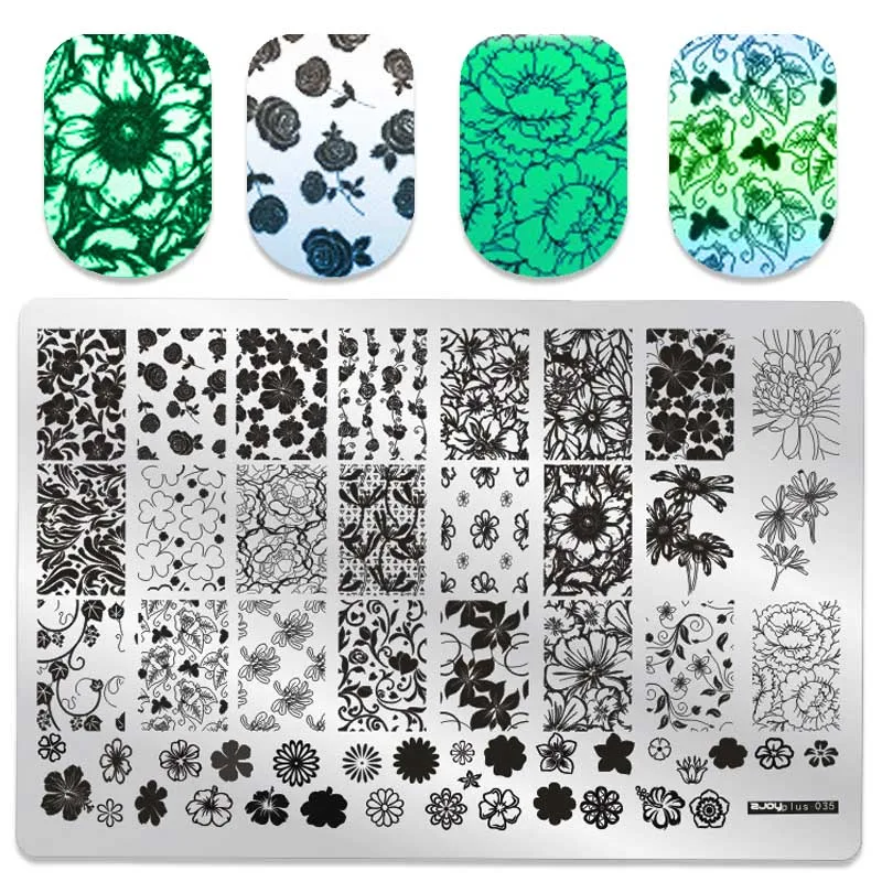 ZJOYplus штамп для дизайна ногтей весенний цветок коллекция листьев пластина для штамповки трафареты маникюрный штамп инструмент 035-038
