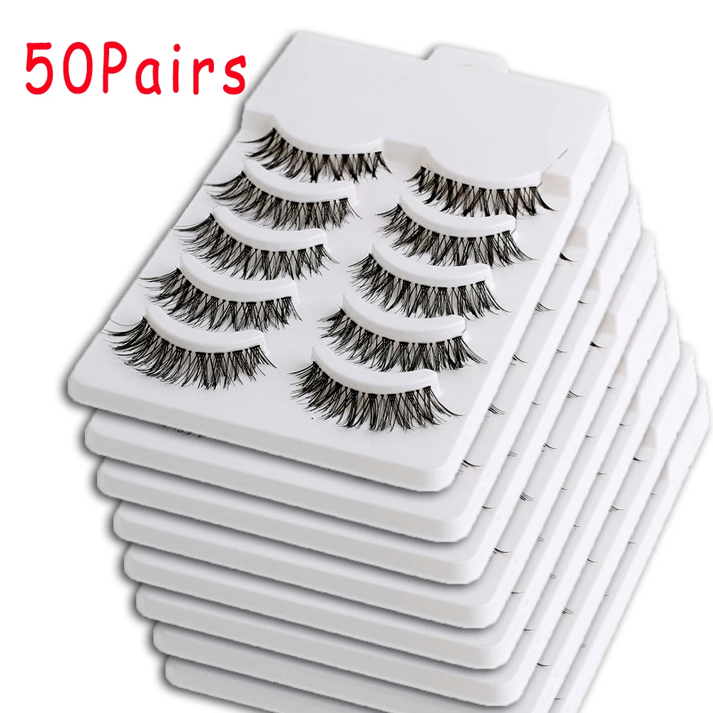 Ресницы Накладные черные натуральные длинные ручной работы для макияжа, 50 пар