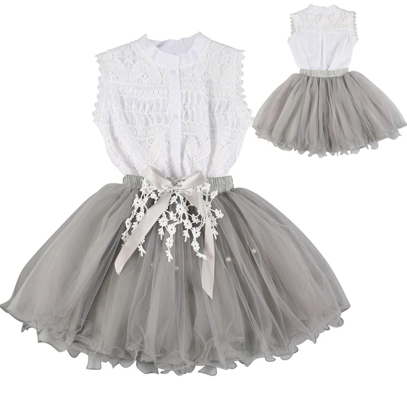 Комплекты одежды для девочек, летние кружевные футболки, юбка-пачка...
