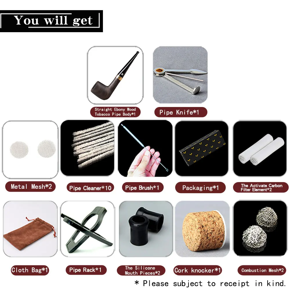 Деревянная трубка из черного дерева, трубки для курения табака дюйма, 9 мм, с фильтром, ручной работы, подарок для дедушки, отца ac0015
