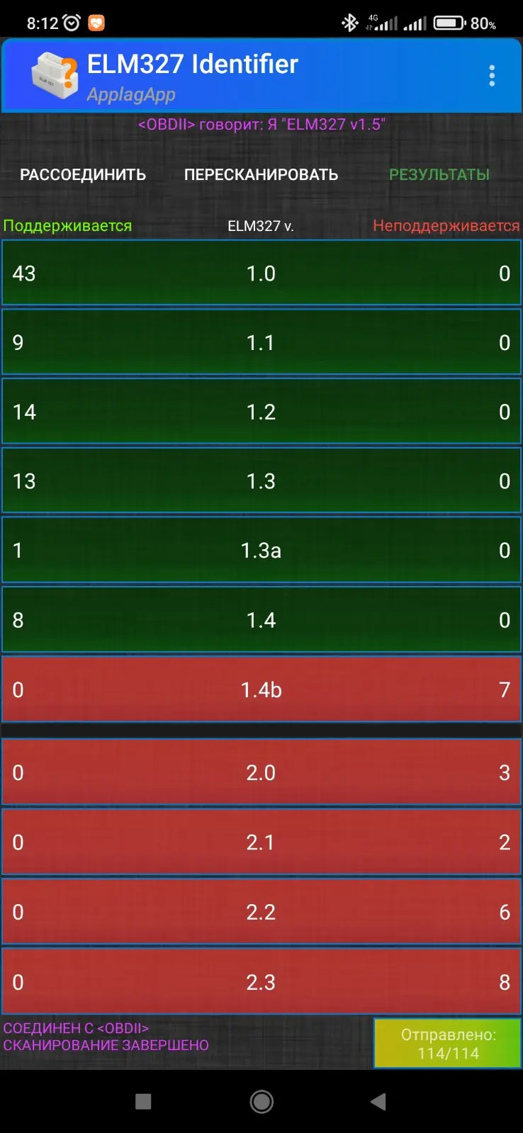 Подключился к Ладе Калине 1, ошибок не было. По датчикам данные показывает обороты, напряжение, прочее. Но к айфону не подключился, там блютуз 4.0 нужен. Похоже не поддерживает. Через андройд телефон все ок. Использовал Car Scanner приложение