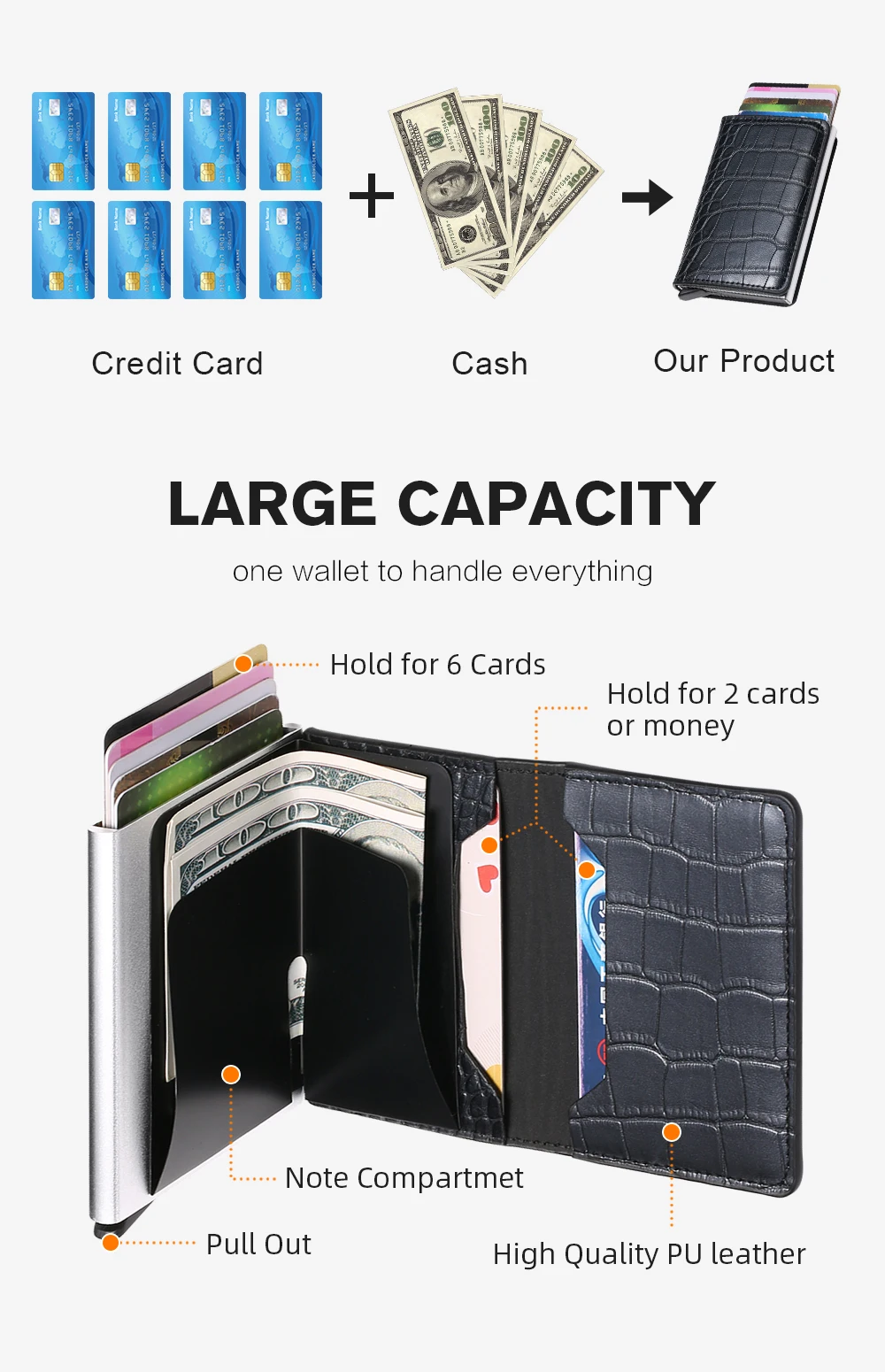Обычные RFID кошельки обычно могут блокировать частоты от 30 кГц до 300 кГц, в то время как наши RFID кошельки (Радиочастотная Идентификация) могут блокировать частоты от 3 МГц до 30 МГц, который прочнее обычных продуктов и имеет более длительное расстояние блокировки.Цвета на мониторе вашего компьютера могут немного отличаться от реальных цветов товара в зависимости от настроек вашего монитора