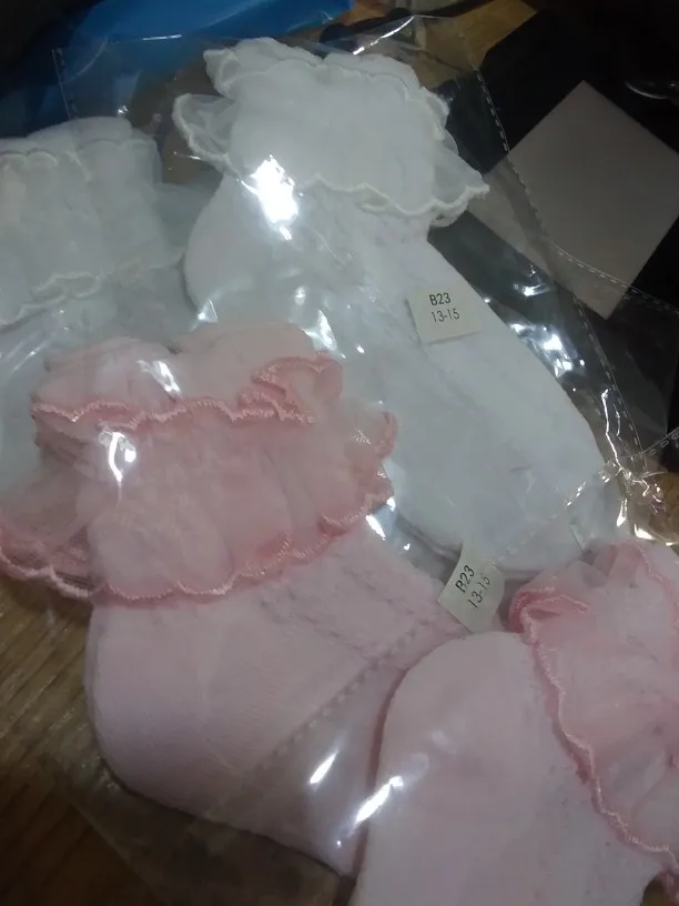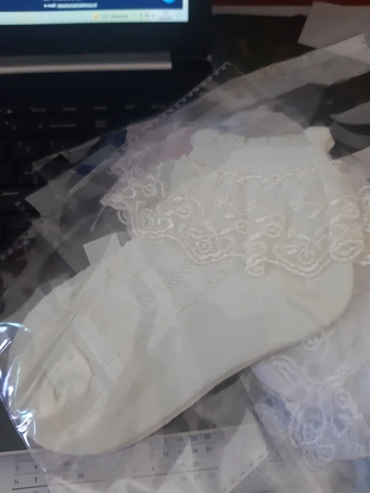 Наконец белые носки с оборками, которые действительно белые и не кремовые! Спасибо. Медленная отправка и доставка, но в итоге прибыла.