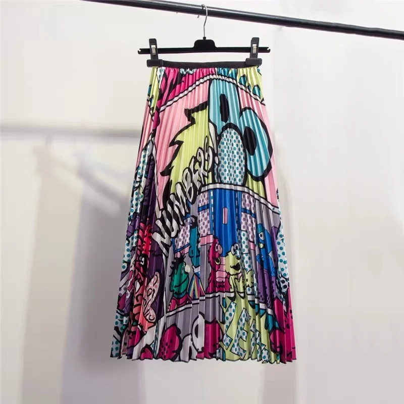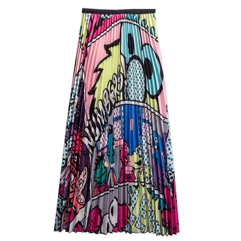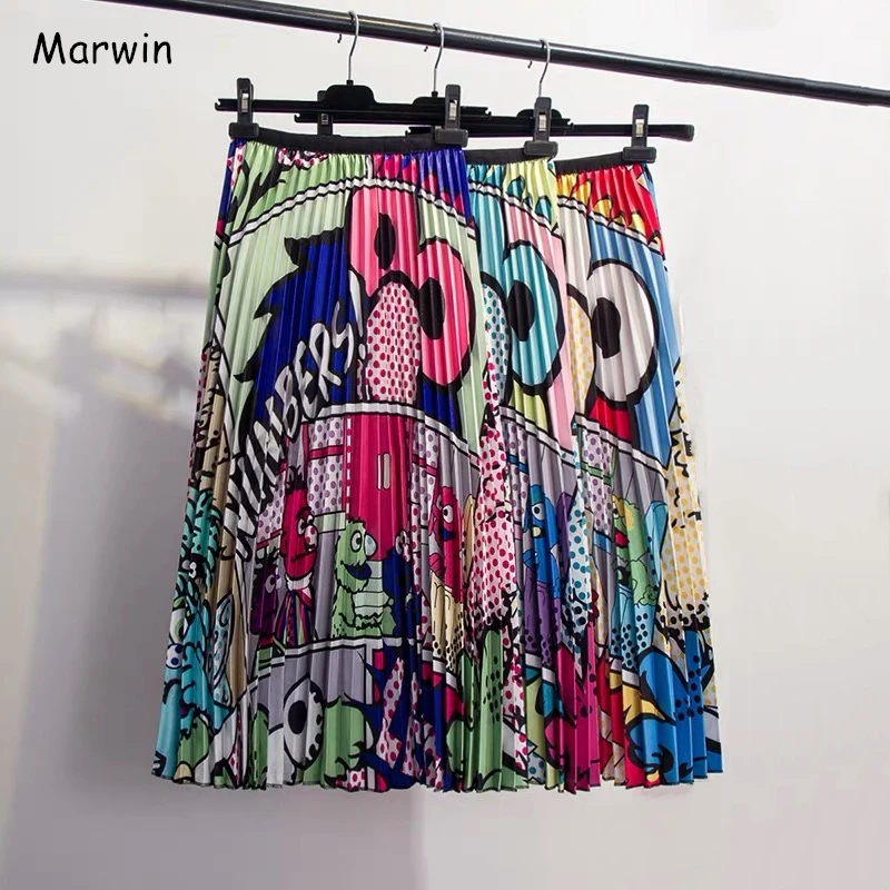 Плиссированная юбка с мультяшным принтом Marwin, плиссированная эластичная юбка А-силуэта, до середины икры, весна 2019