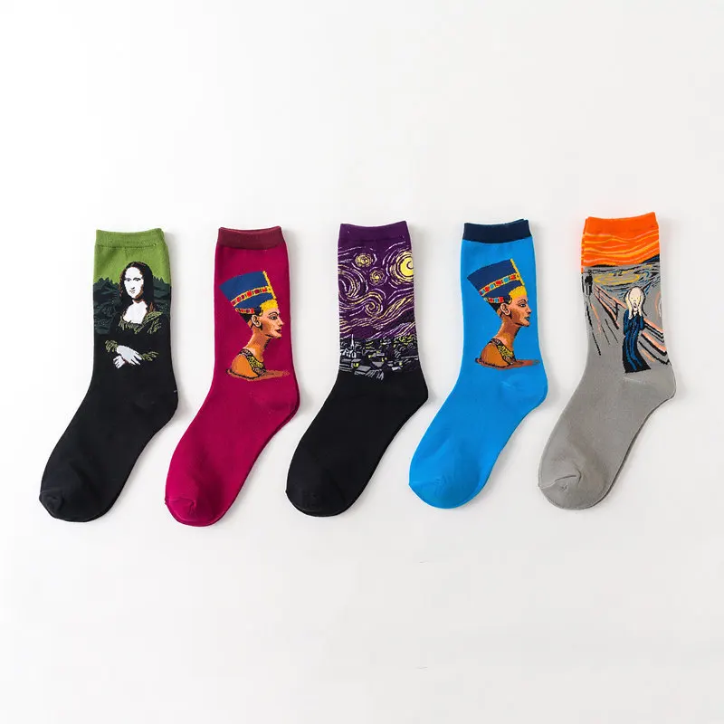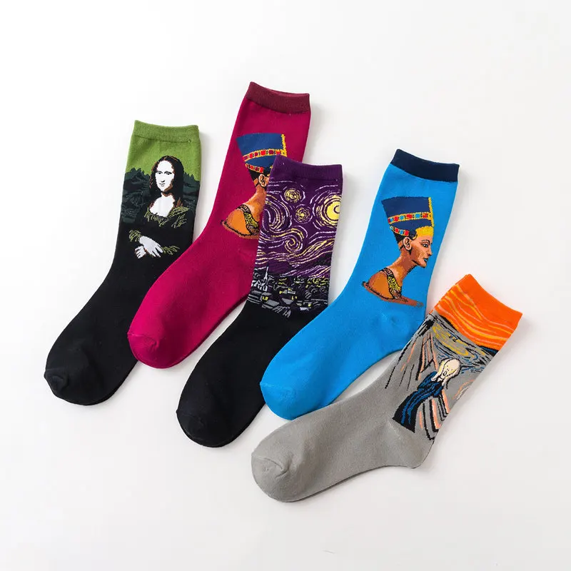 Новинка осенне-зимние ретро женские оригинальные художественные носки с изображением звездной ночи Ван Гога Фреска всемирно известные мужские носки смешные масляные носки