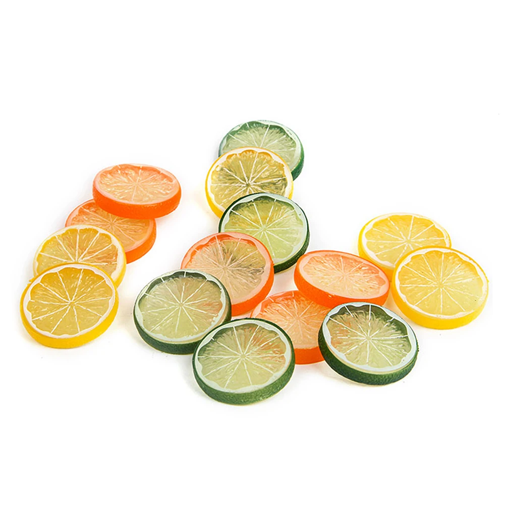 10 шт., искусственные мини-кусочки лимона для моделирования, 5 см, имитация искусственных фруктов, вечерние украшения для кухни и свадьбы
