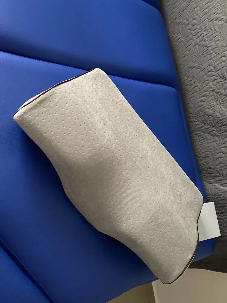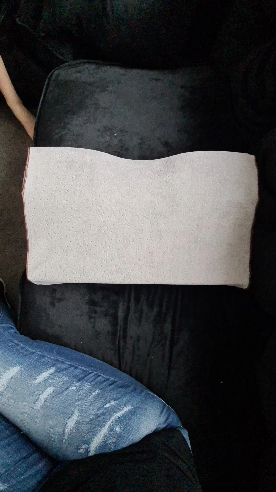 Изображение не то же самое, что я получил. Подушка, которую я получил, была прямоугольной и не имеет паза для шеи. У него также был очень плохой запах внутри.