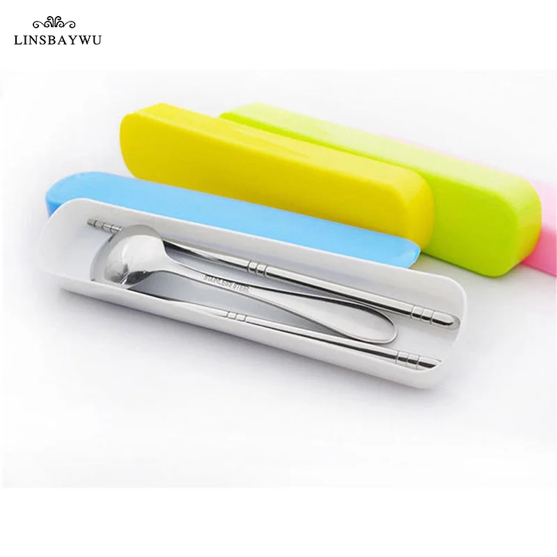 Удобный Пластик палочки из нержавеющей стали набор коробка соломы столовых приборов для пикника контейнер для вещей первой необходимости легко взять с собой, коробка для хранения столовой посуды