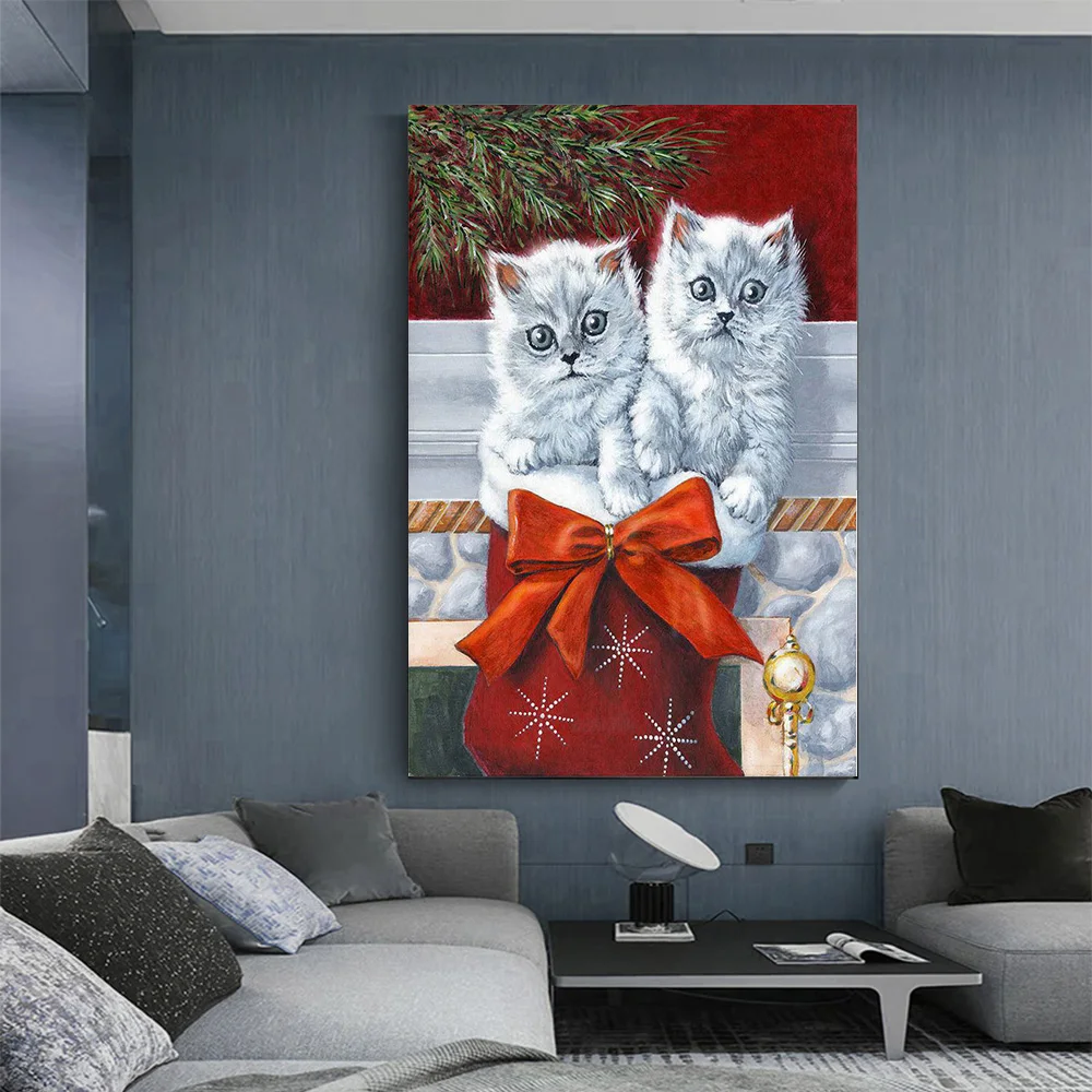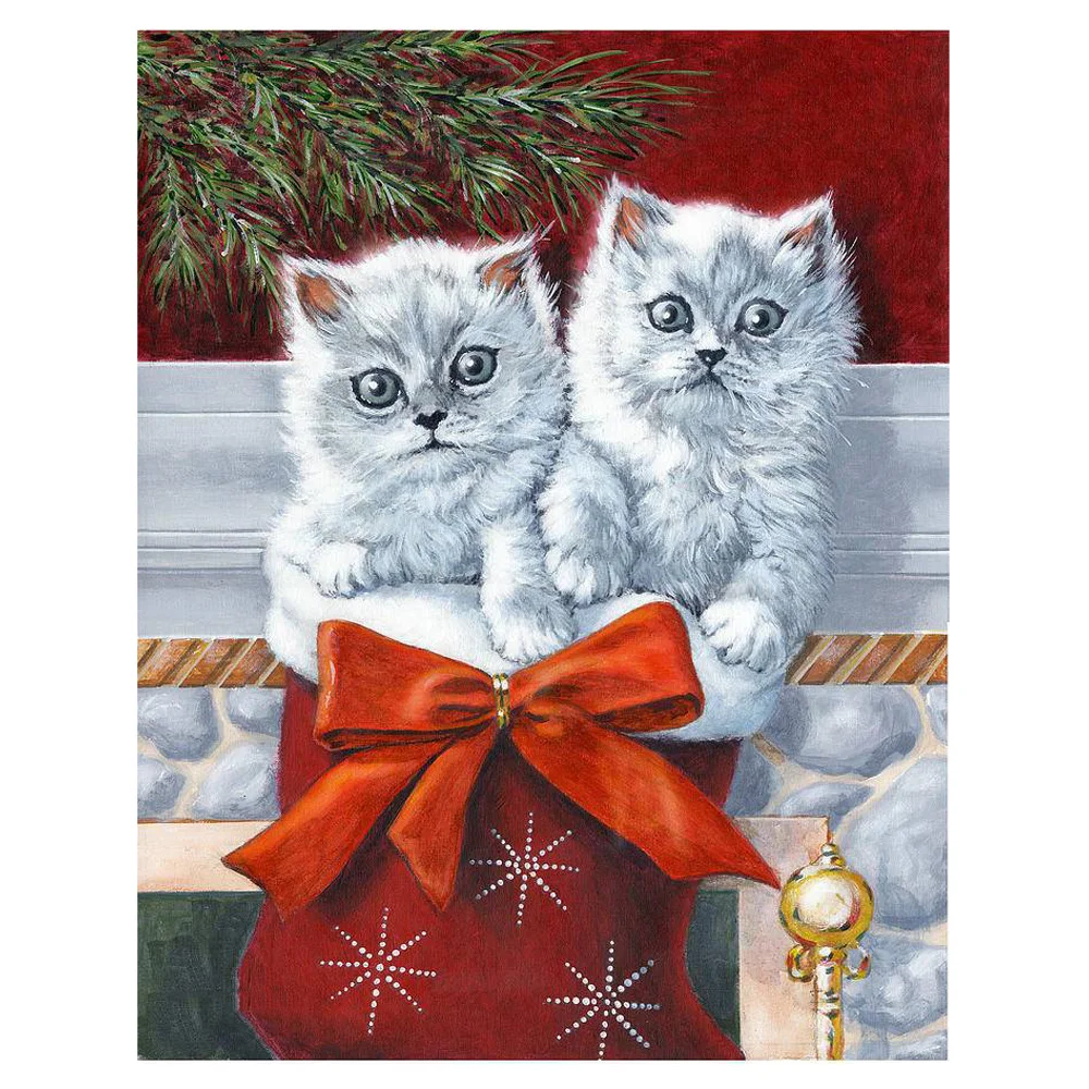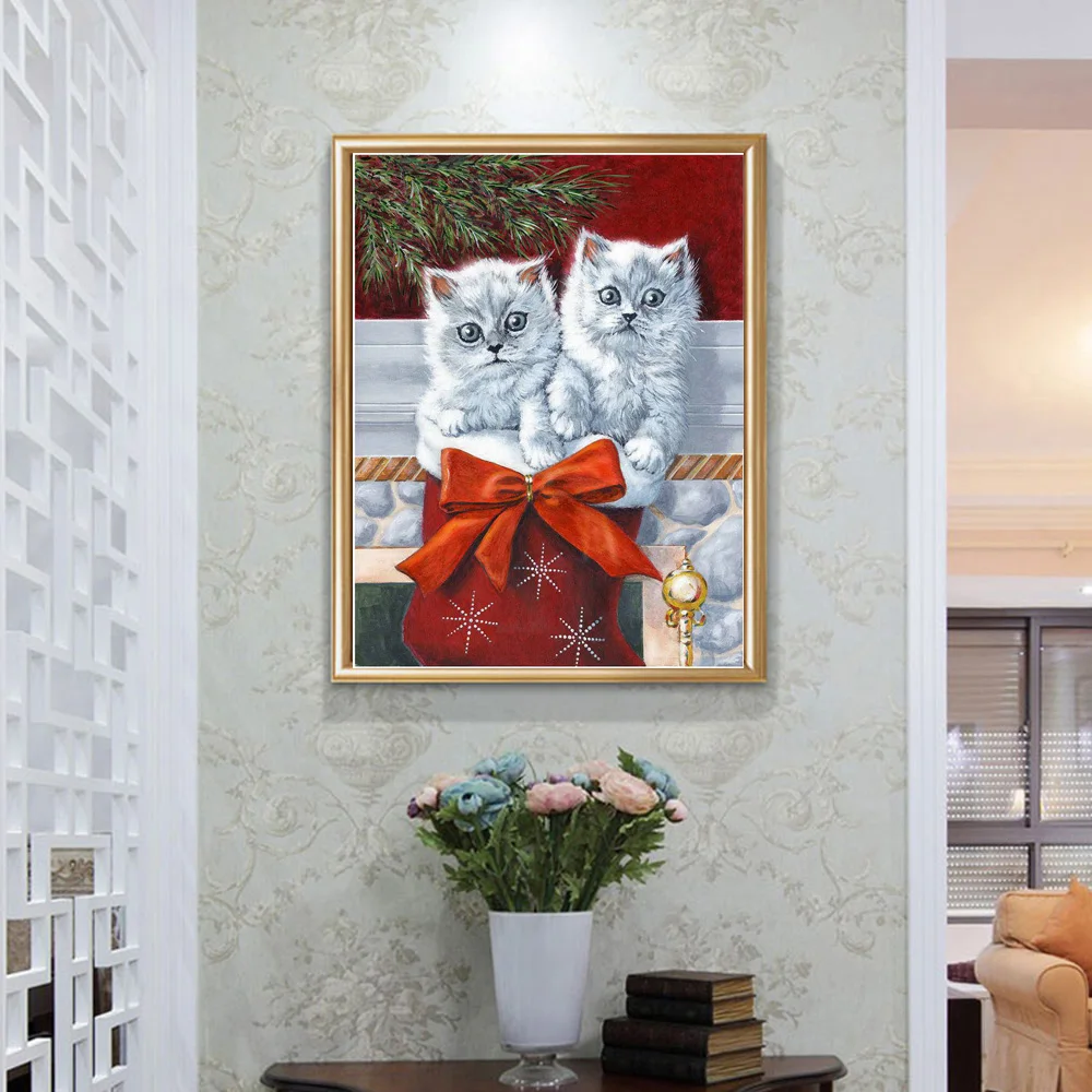 DIY алмазная живопись белая машина пара Рождество полный Рождественская Алмазная Вышивка Кот любовник домашний декор Бриллиантовая мозаика с животным