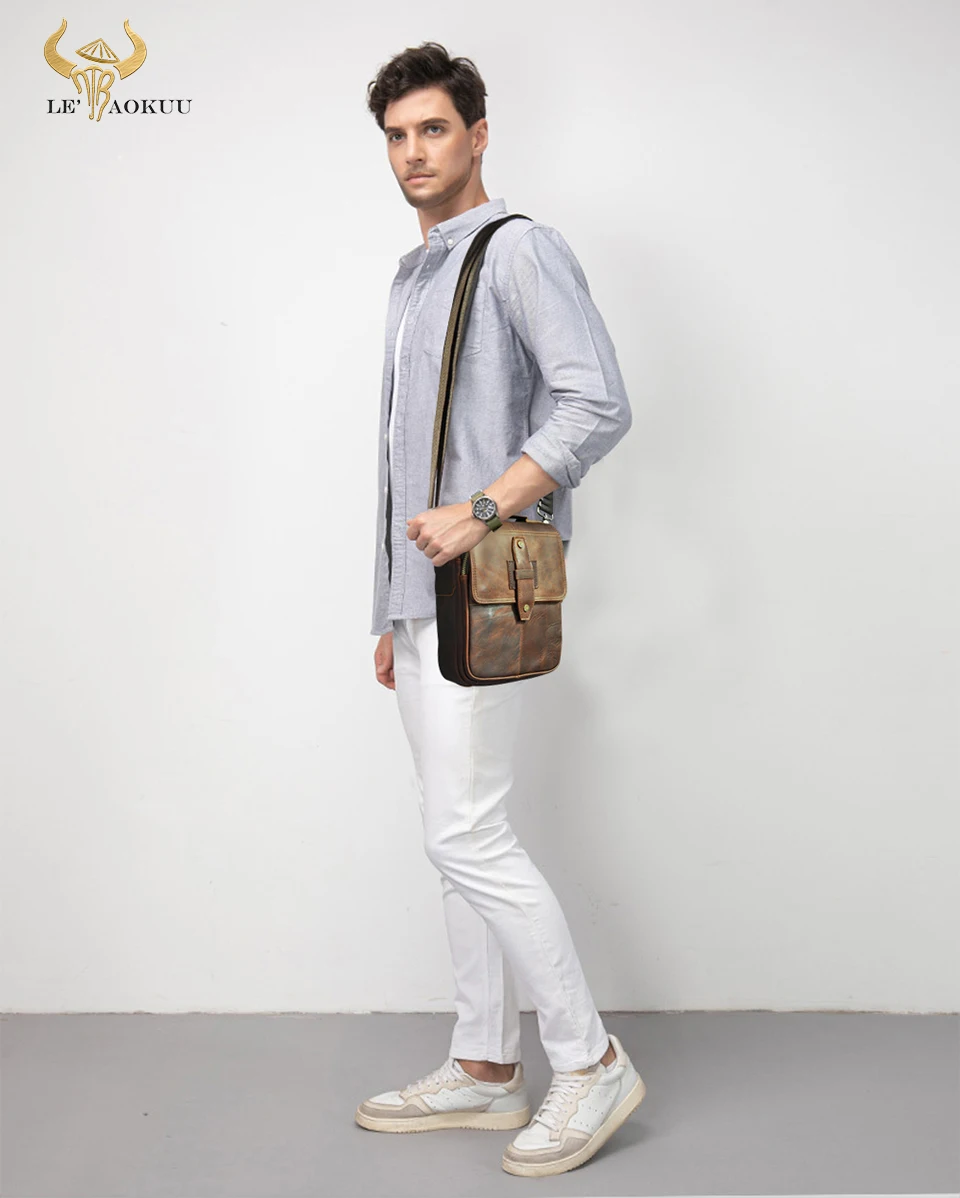Качественная оригинальная кожаная мужская повседневная сумка-мессенджер через плечо дизайнерская модная сумка через плечо 8 дюймов Pad Tote Mochila Satchel 153-db