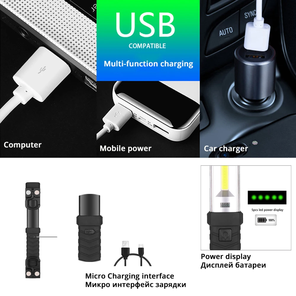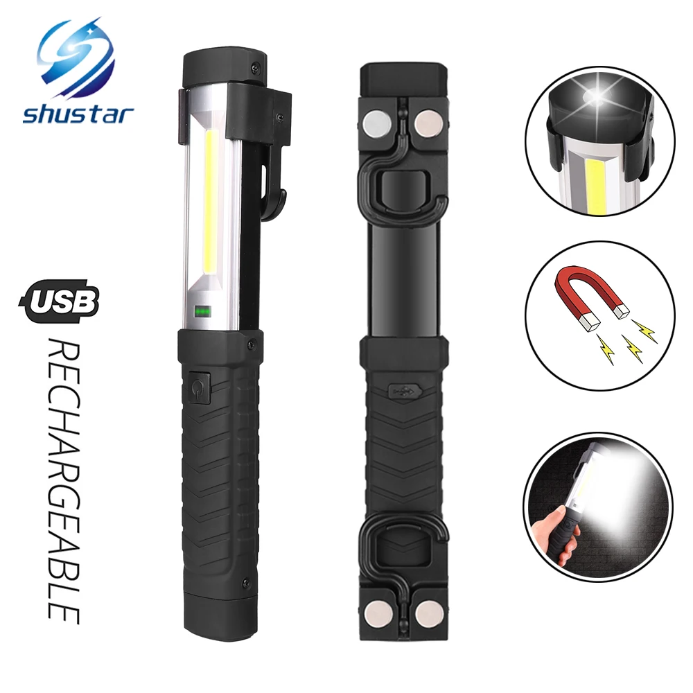 Рабочий светильник с перезаряжаемым от USB монолитным блоком светодиодов, яркий светодиодный светильник с мощным магнитом и крючком, подходящим для кемпинга, обслуживания и т. д.