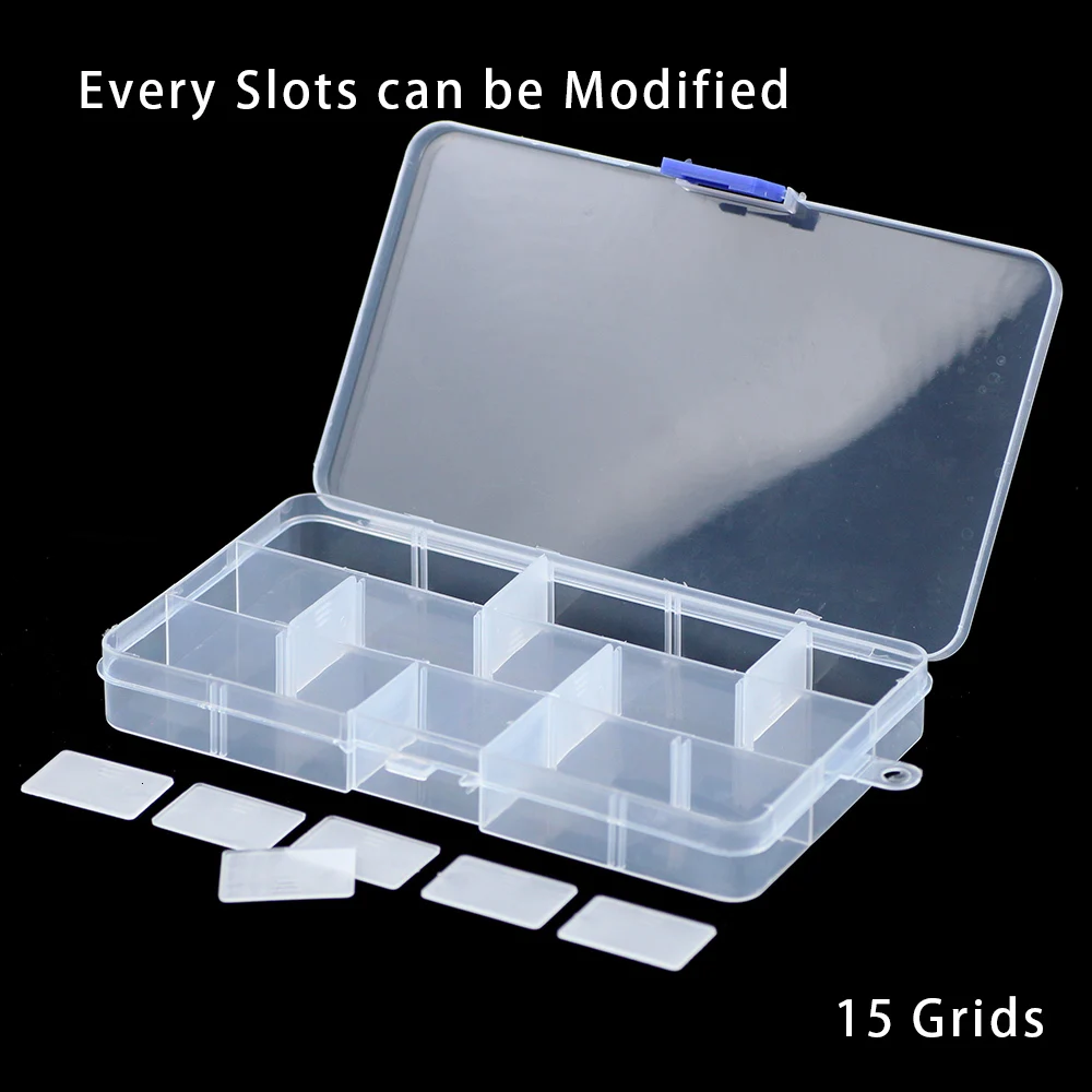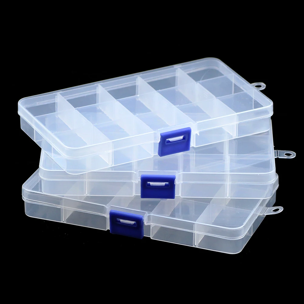 Регулируемый пластиковый ящик для ювелирных изделий JHNBY, 15 слотов, прямоугольник, контейнер для хранения ювелирных изделий, для бусин, серег, кольца, витрины, подарочные коробки