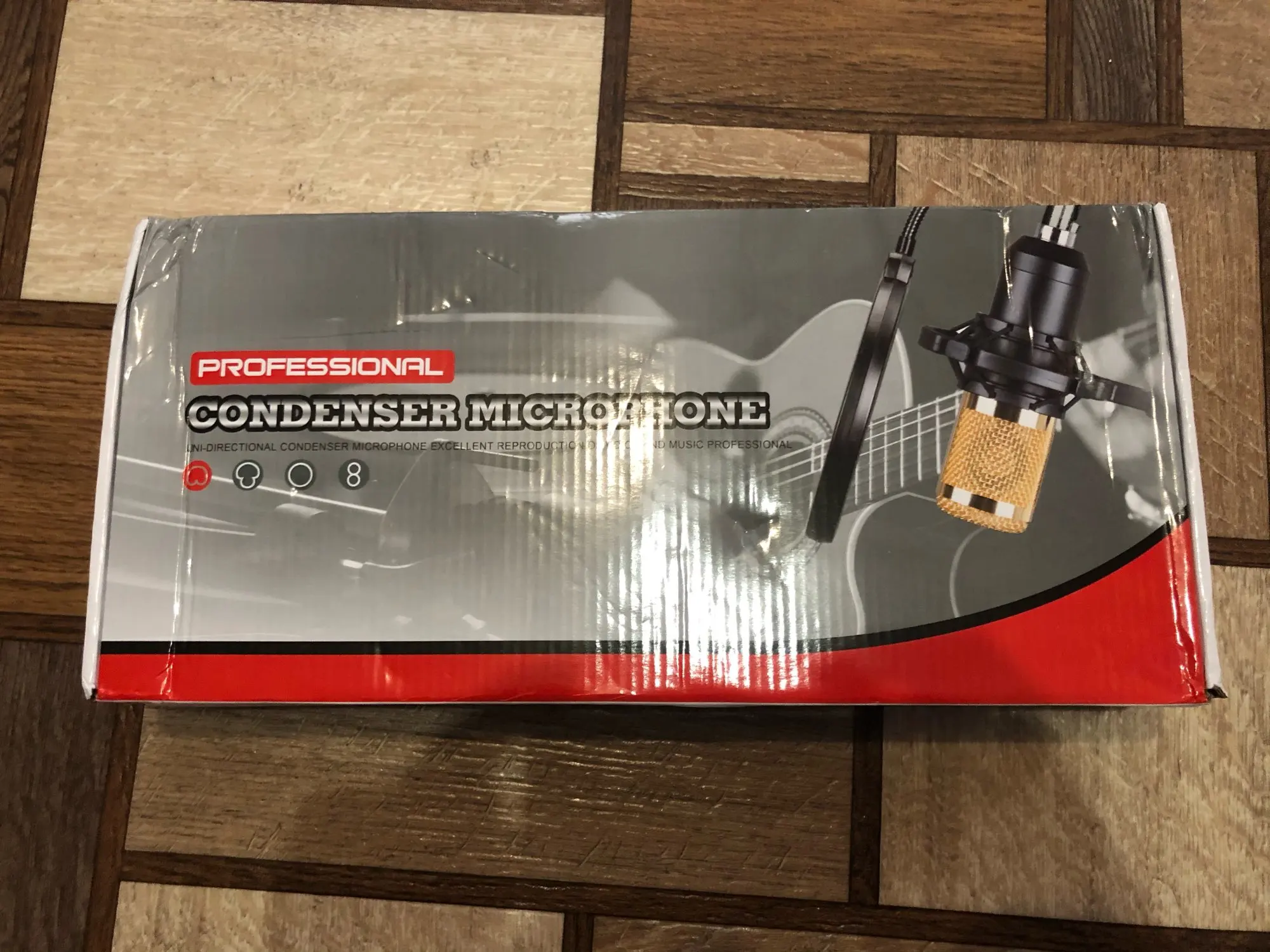 Микрофон хороший, качество сборки хорошее, но китайский пластик так себе пахнет... Звук тихий, для него нужна звуковая карта с фантомым питанием. Быстро доехала, до Костромы 4 дня