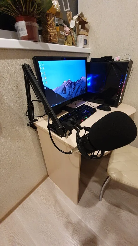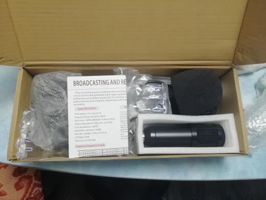 Микрофон хороший , но без фантомного питания тихий. Крепление стойки выглядит хлипко, такое чувство что развалится, но всё таки оно держится.Комплектная аудиокарта не работает но это не большая потеря, так как даже самая дешёвая современная материка имеет приемлемую аудиокарту. С Москвы до Калуги посылка шла 8 дней + курьер тупил 2 дня и не хотел нести посылку, в итоге микрофон доехал до меня за 10 дней, что является вполне хорошим результатом.