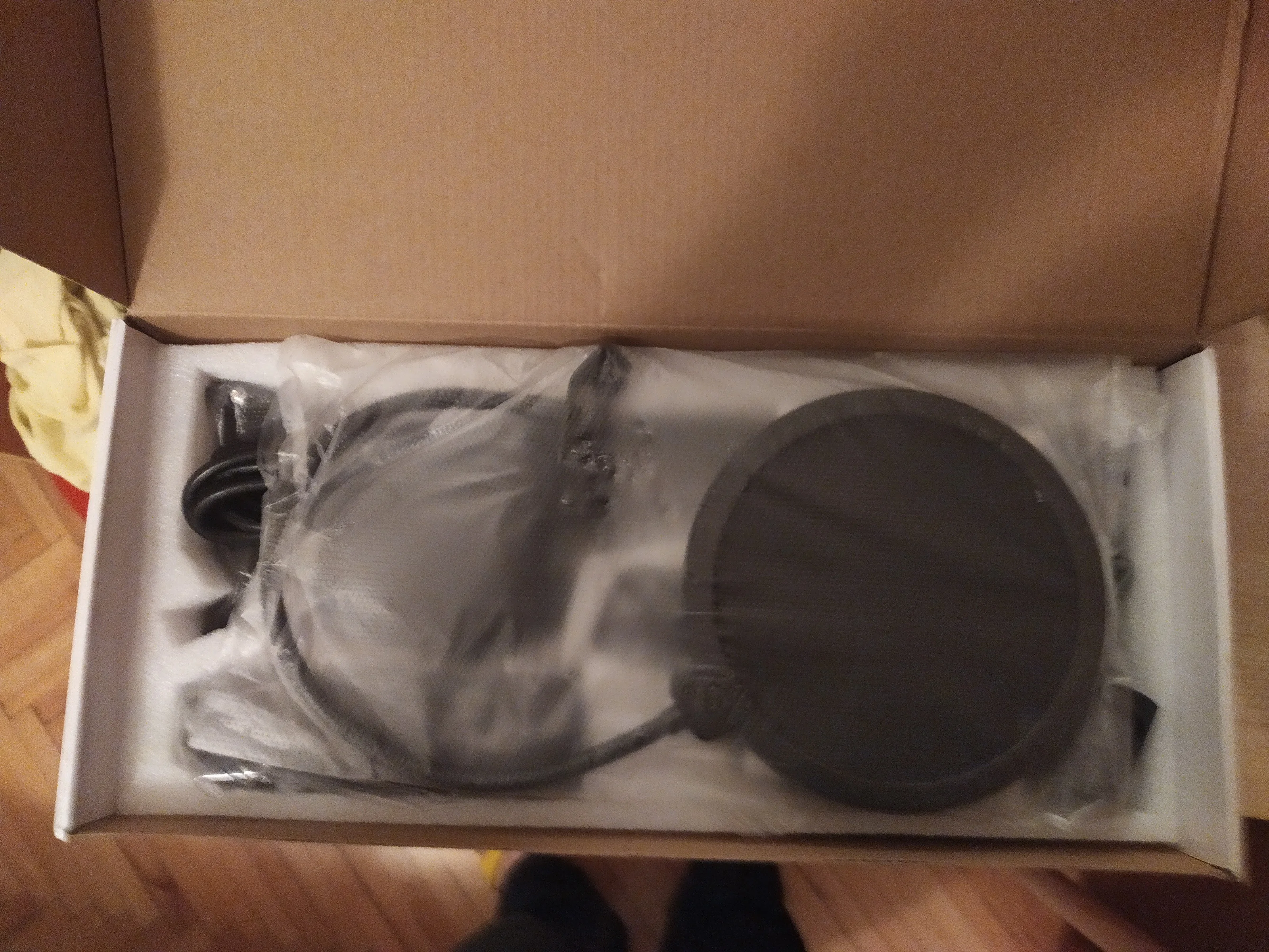 Товар пришёл очень быстро, был хорошо упакован, но коробка немного мятая и порванная, но это уже спасибо почте России. Всё в комплекте есть, но я не установил попфильтр, он мне пока не нужен. Качество неплохое за свою стоимость, ведь помимо микрофона ещё было оборудование. Спасибо!