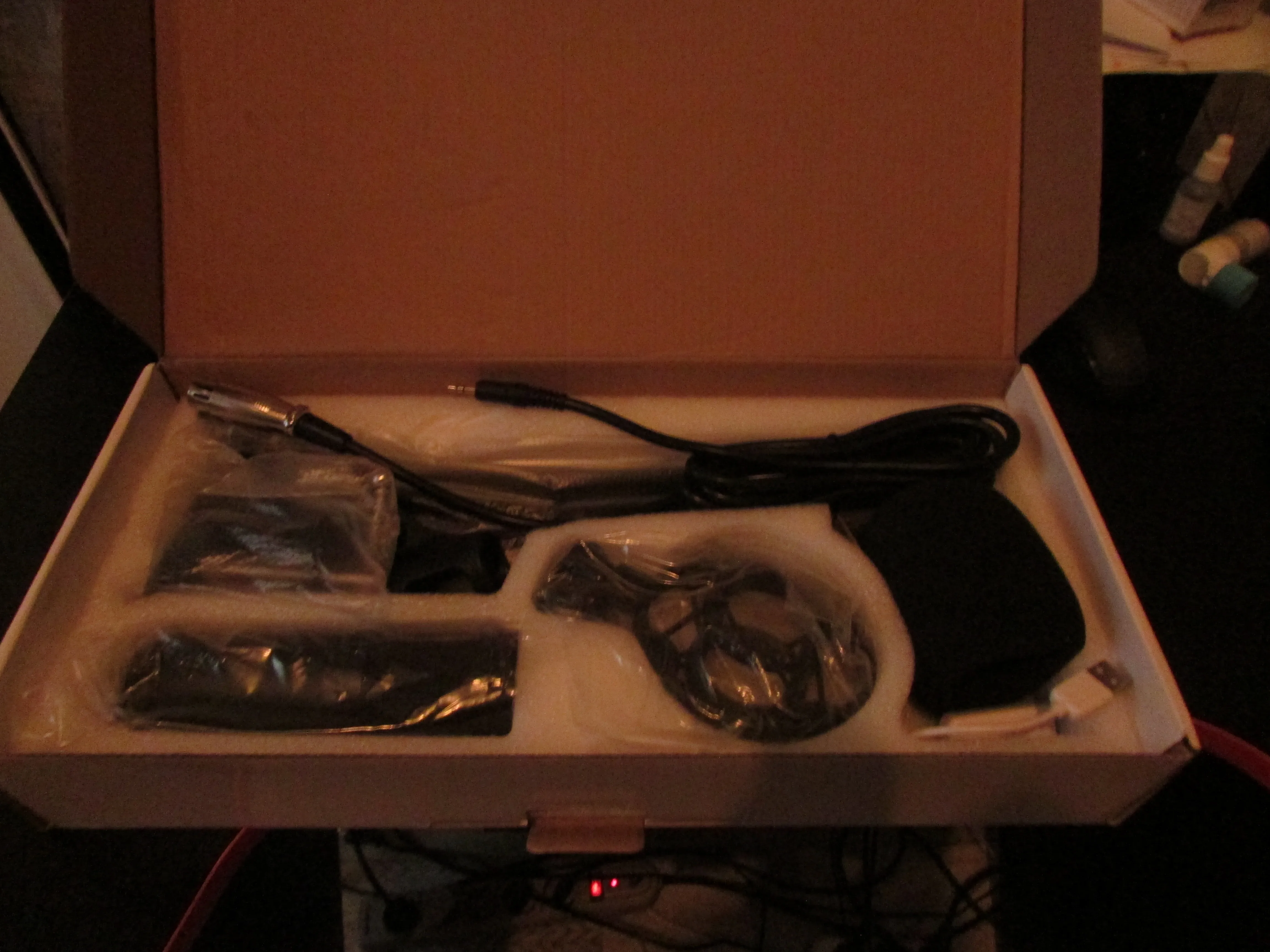 Пришел, куча всего в комплекте, подключаю через свою внешнюю звуковую карту с фантомным питанием, все отлично