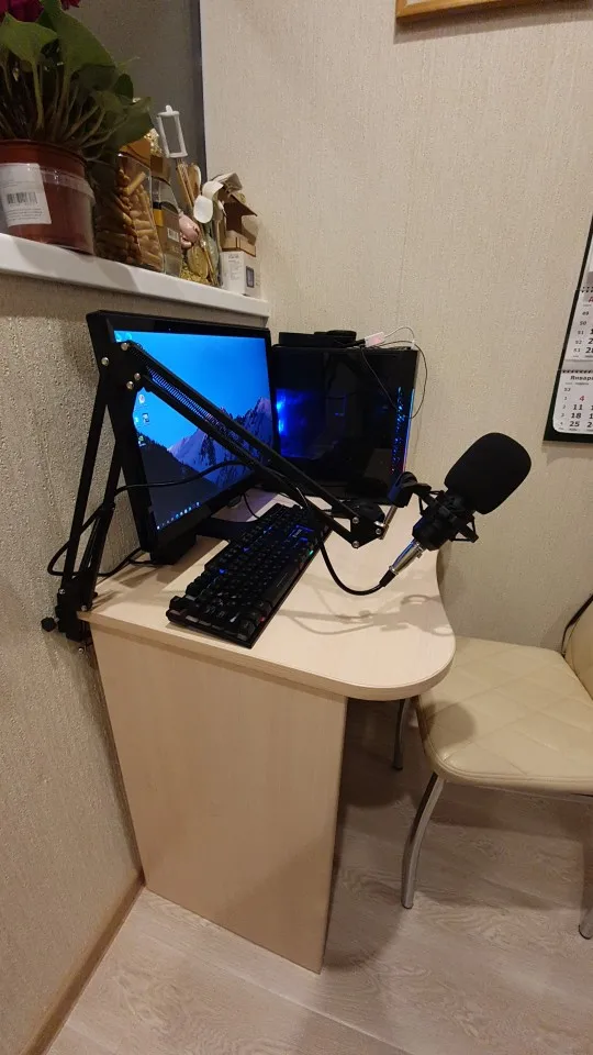 Микрофон сам более менее хороший.....но еб..... С ним надо еле звук вывел!!! Стойка сопливая на второй день резьба отошла.....а сам крепеж вк столу кривой еле закрепил, звуеовая карта что в комплекте шла через неделю умерла отказалась работать, вообщем полный шлак деньги выброшенные зря на ветер