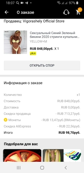 продавцу мои дифирабмы и литры шампанского за то, что честно отправил купальники по мега-скидке и гипер-низкой цене. сам купальник качественный, смелый, доехал быстро с отслежкой. грудь 82, бедра 97, вроде как все подошло, но при примерке поняла, что носить наверно вряд ли осмелюсь, может разве что верх. но продавцу все равно спасибище
