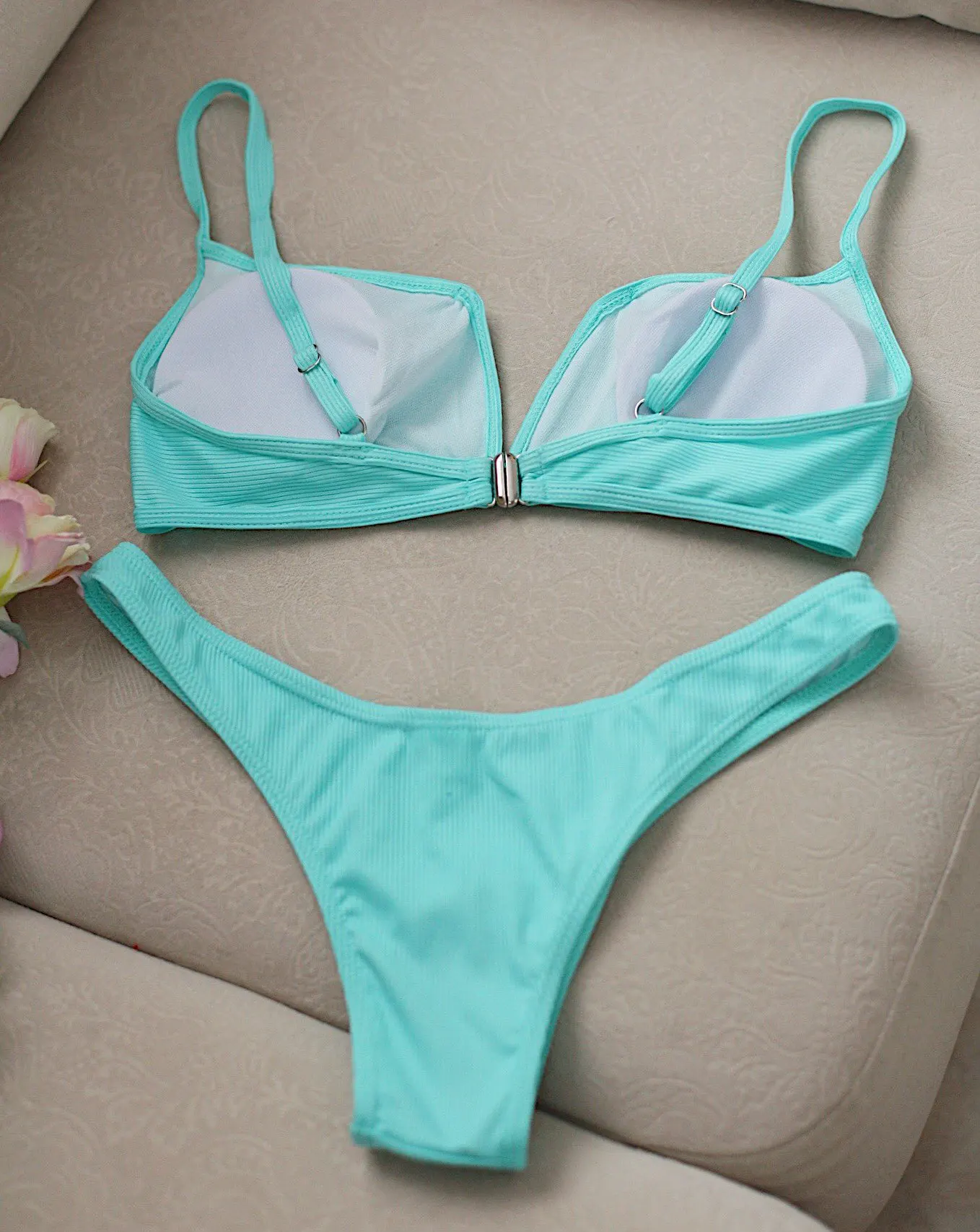 Сексуальное сине-зеленое бикини 2021, стринги, женская одежда для плавания с пуш-апом, пляжная одежда с ремешками, однотонный комплект бикини с высоким вырезом, купальный костюм для плавания