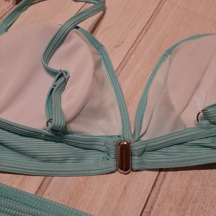 Сексуальный купальник ❤️ Цвет-бирюзовый Размер взяла Л-на рост 170см,бюст 89см, бедра 96 см сел четко по размеру. В бюстгальтере есть мини пуш ап,его можно убрать. Плавки низкой посадки,не тянутся. Красивый цвет, хорошее качество. Доставка 10 дней Новой почтой в Украину.Рекомендую!