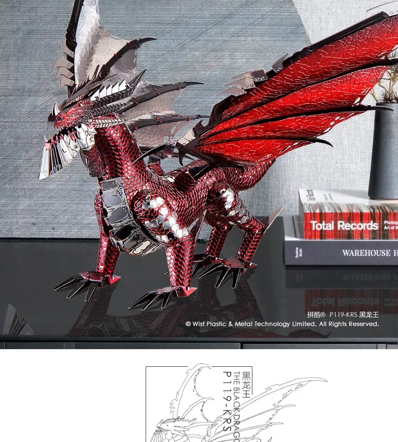 Металлический 3D-пазл Piececool, модель модели черный дракон, модел...
