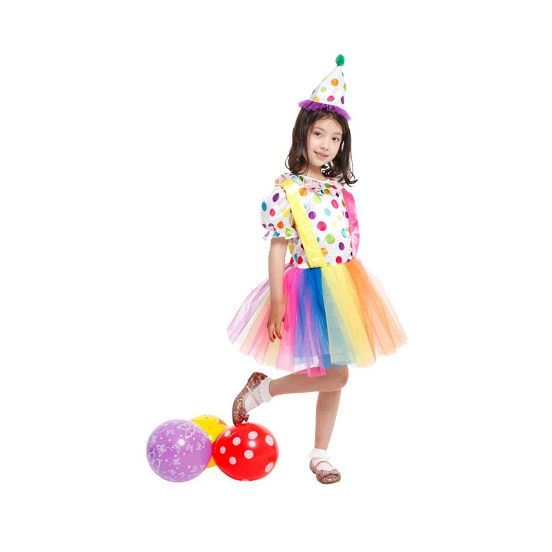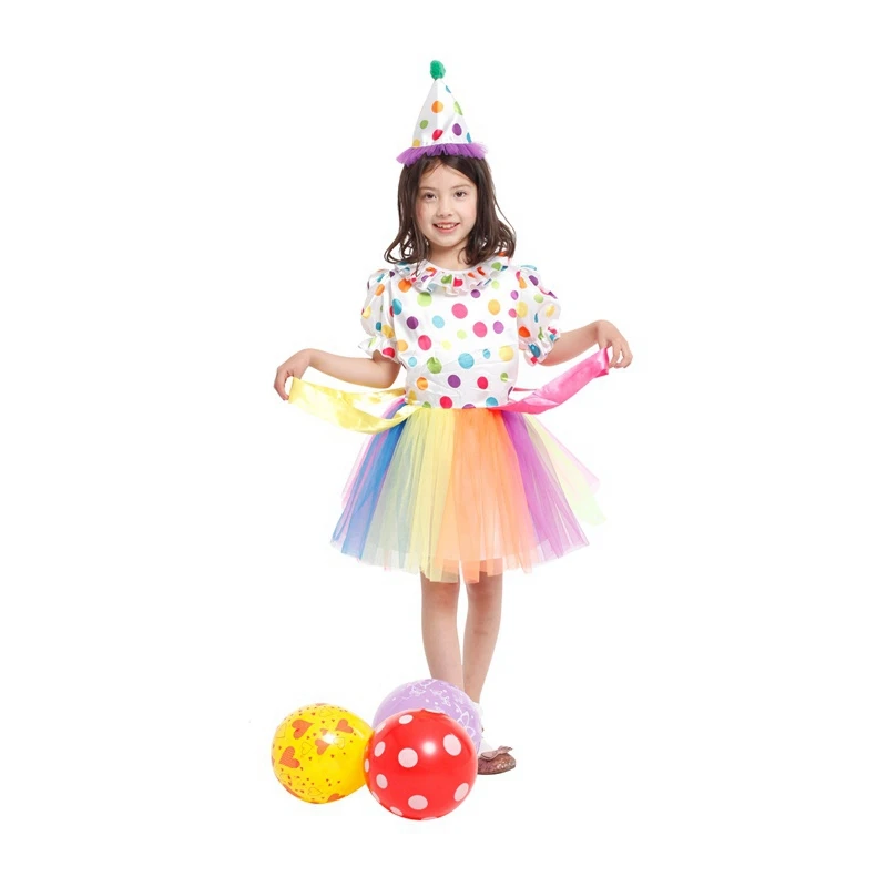 Детский Радужный костюм клоуна с большим верхом для девочек, маскарадное платье-пачка, костюмы на Хэллоуин, Пурим, карнавал вечерние ринку