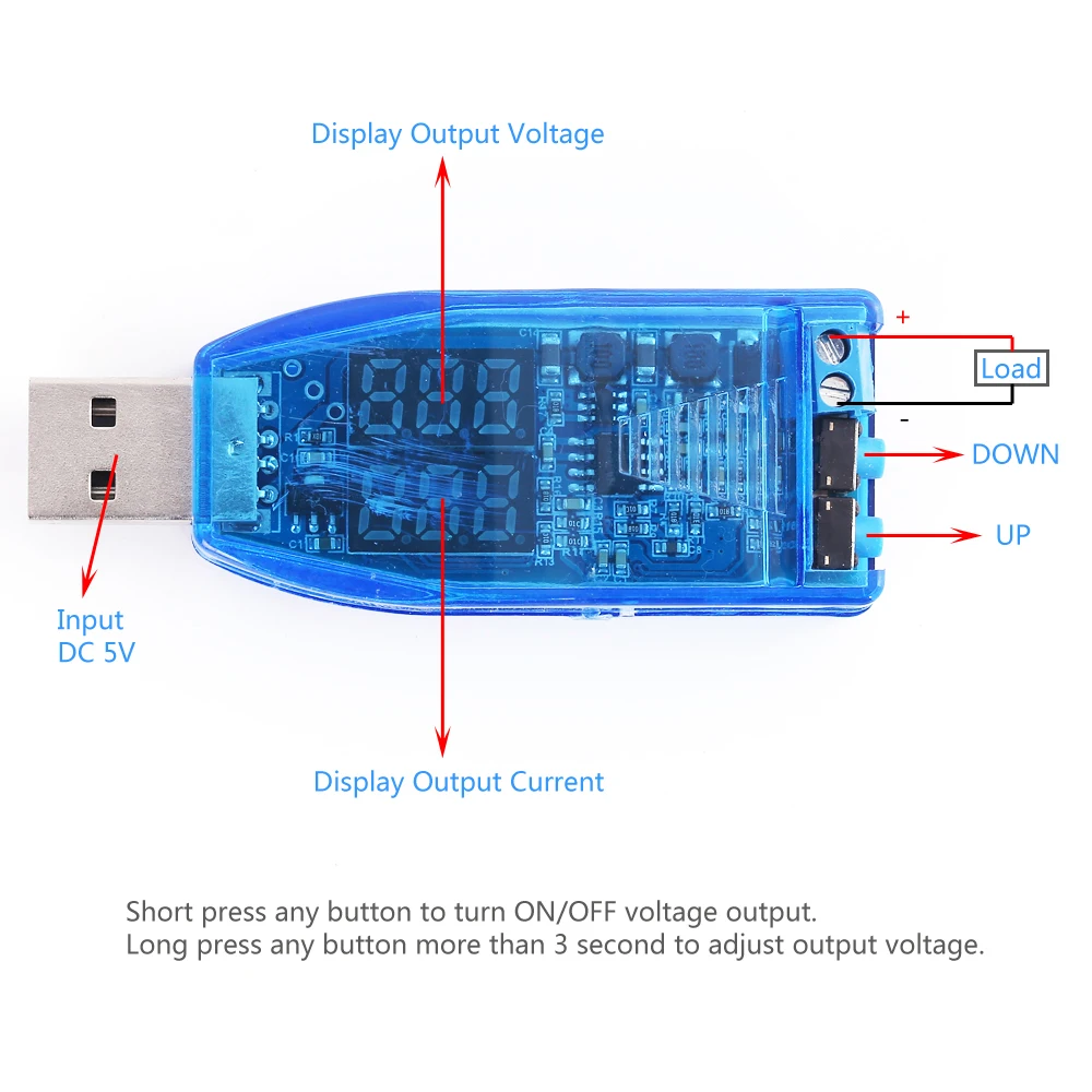 Понижающий блок питания USB, красный зеленый дисплей, Боковая кнопка напряжения и тока, регулировка в коробке, от 5 В до 3,3 В, 9 В, 12 В, 24 В