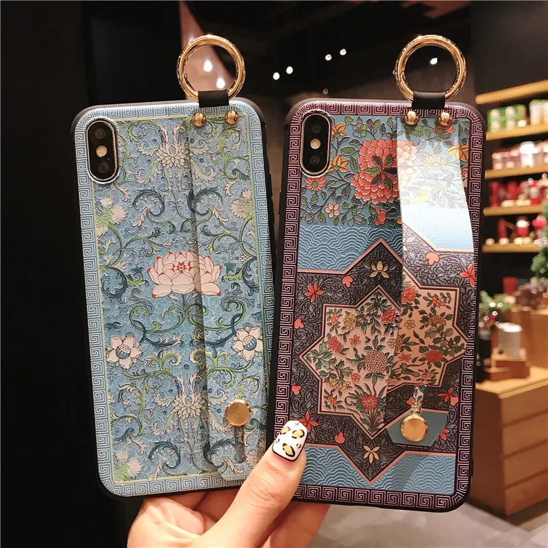 Чехол для телефона с ремешком на запястье для iphone X 10, чехол для iphone 7, 8, 6, 6s plus, Xs, max, XR, мягкая задняя крышка из ТПУ с цветочным узором