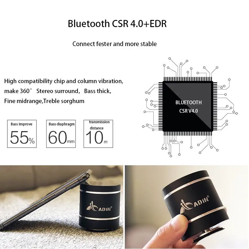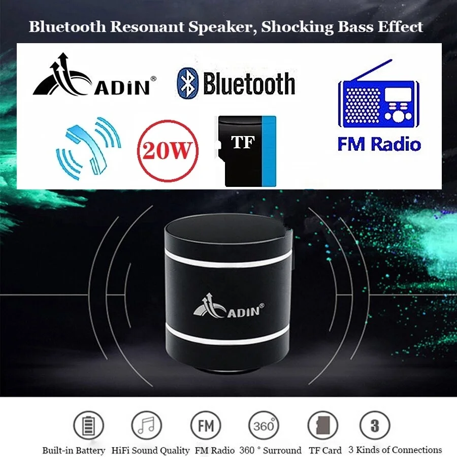 Пульт дистанционного управления Adin, 20 Вт, металлический, беспроводной bluetooth-динамик, fm-радио, HiFi, басы, громкая связь, TF-сабвуфер, колонки, микрофон