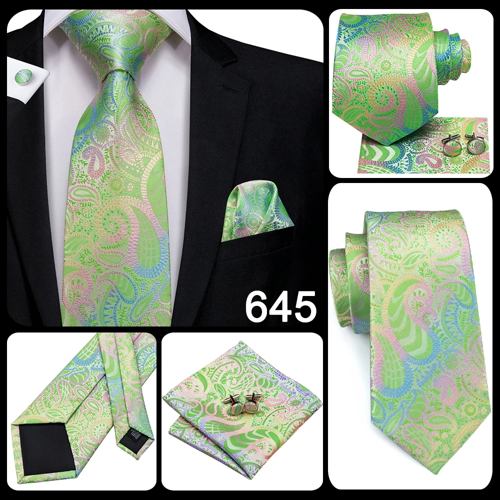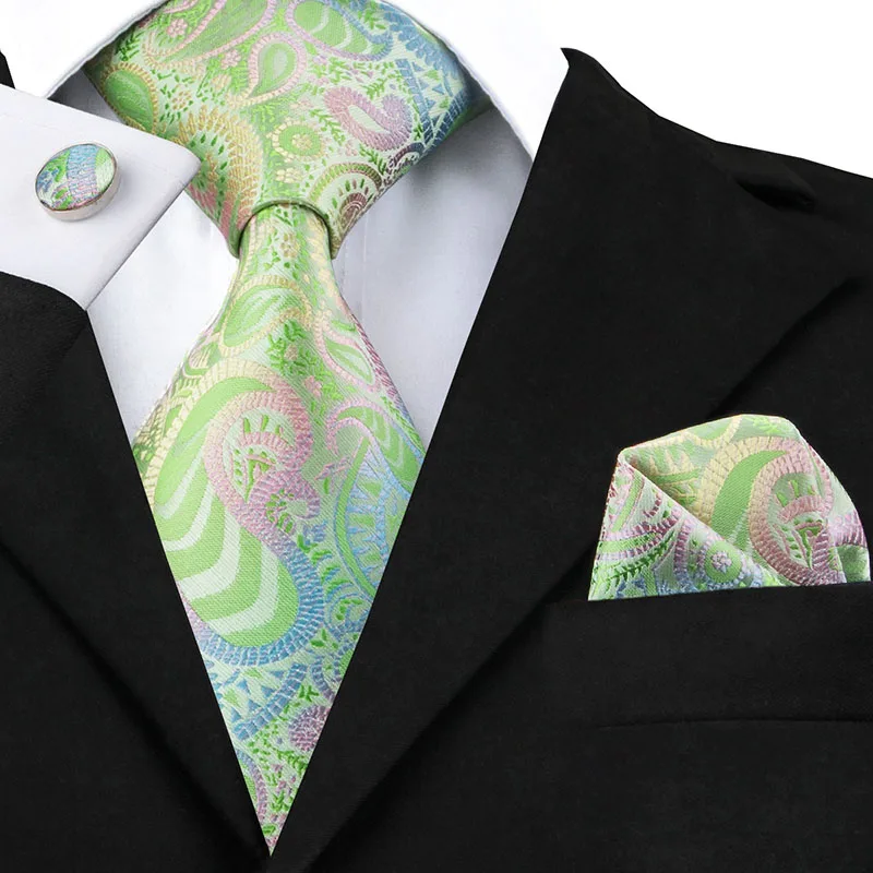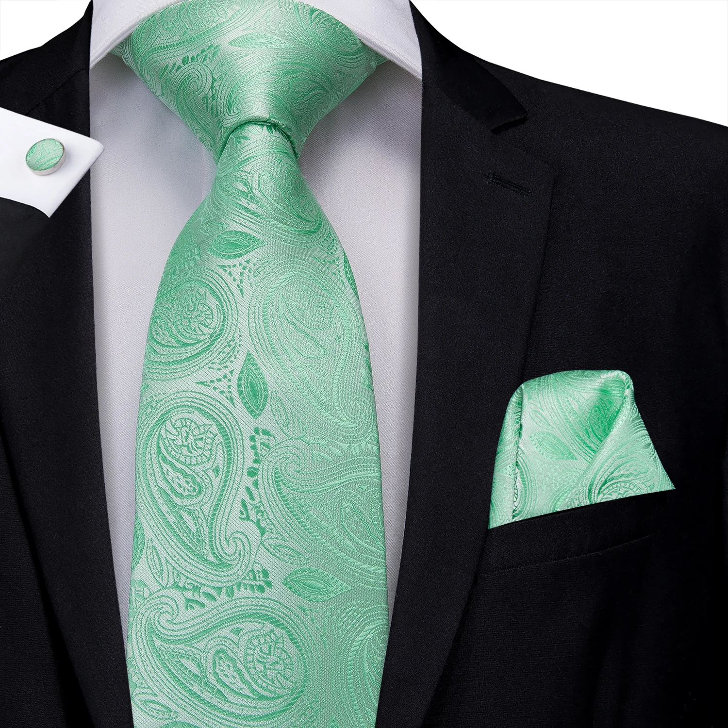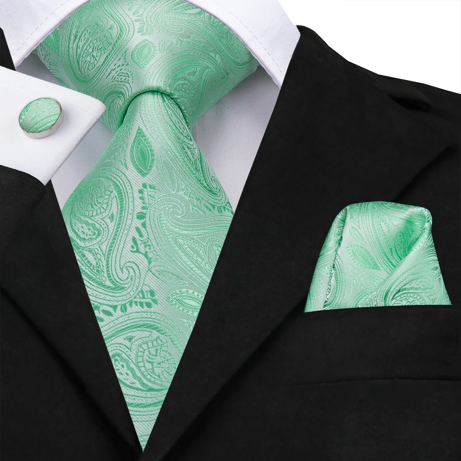 Шелковые галстуки для мужчин мятно-зеленый галстук на шею Пейсли жаккардовый Карманный квадратный галстук набор для вечеринки цветочный однотонный Свадебный галстук SN-3245
