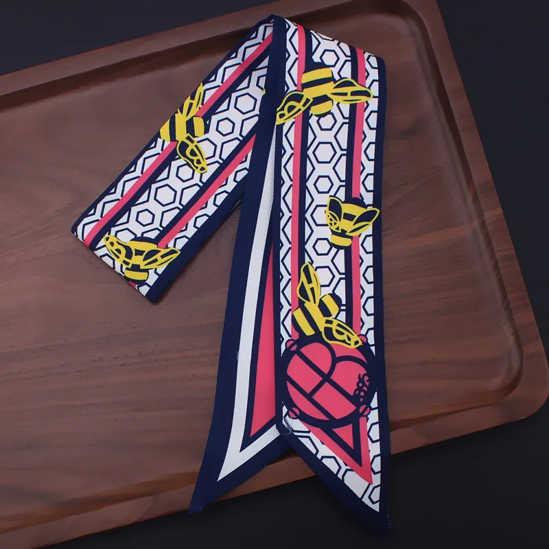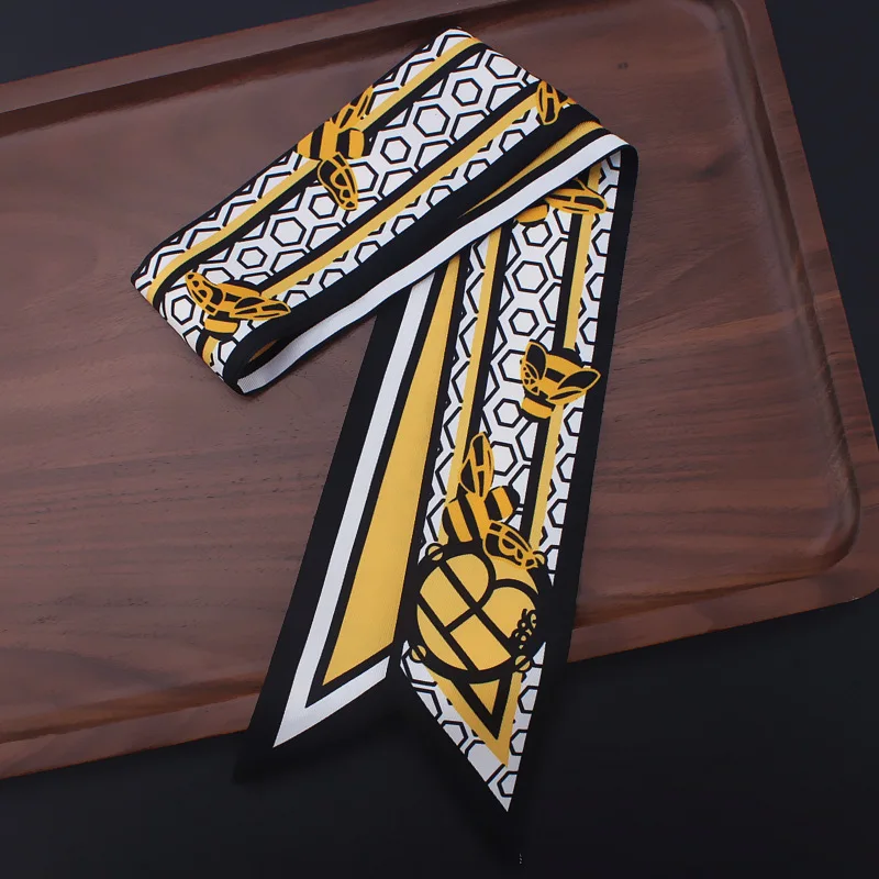 Шарф женский, Шелковый, с геометрическим принтом в виде пчелы
