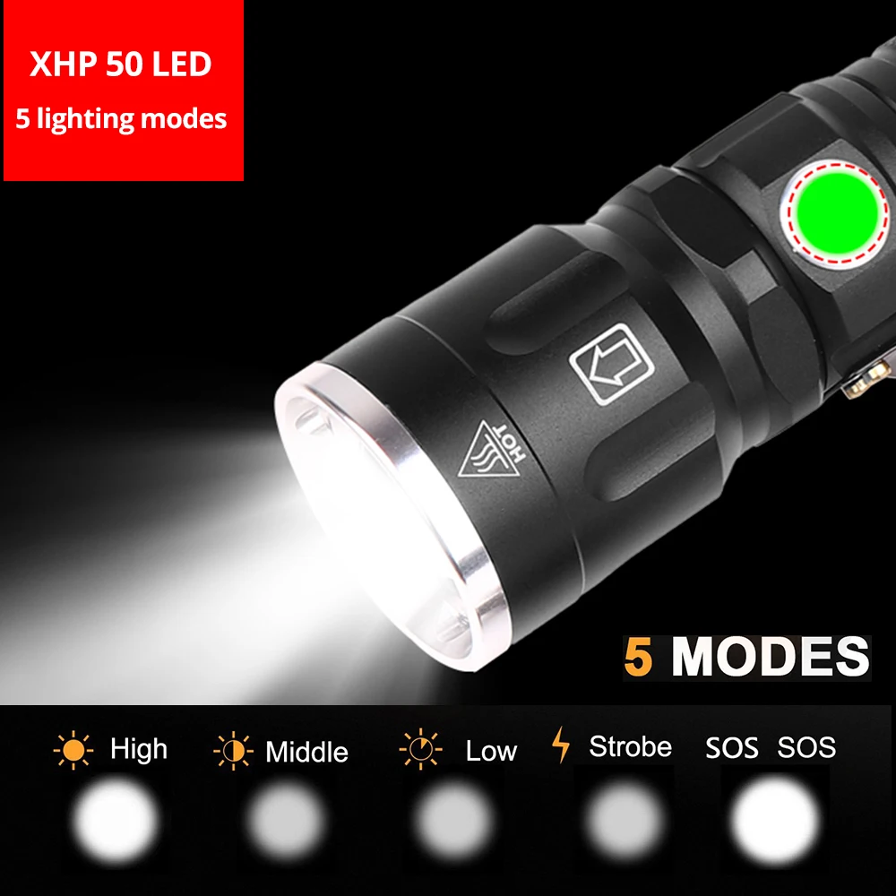 Особенности:1. Лампы XHP 50 имеют превосходную яркость, примерно в 4 раза больше, чем лампы T6. Для любителей спорта на открытом воздухе у вас есть фонарь XHP 50, вы будете бесстрашны ночью.2. Весь корпус является водонепроницаемым и может использоваться обычно в дождливые дни.3. Продукт имеет функцию напоминания о низком заряде батареи для легкой зарядки.