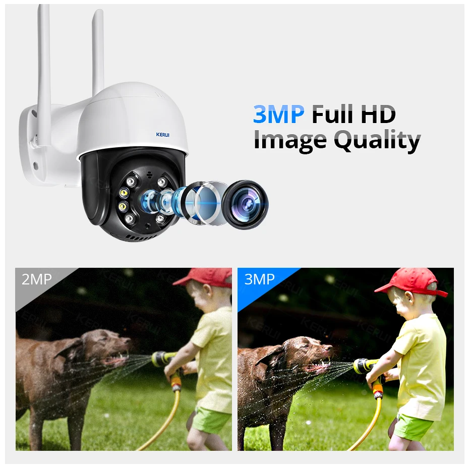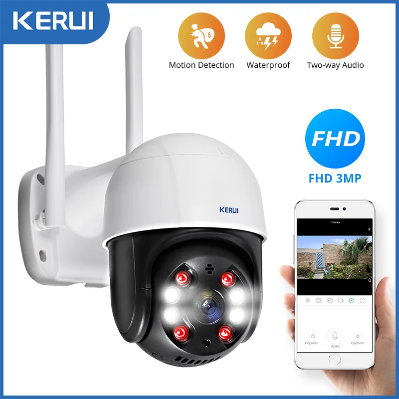 KERUI Наружная Водонепроницаемая Беспроводная 3-мегапиксельная Wi-Fi IP-камера Купол 4X PTZ Цифровой зум ИК-камера Домашняя Безопасность CCTV Видеонаблюдение