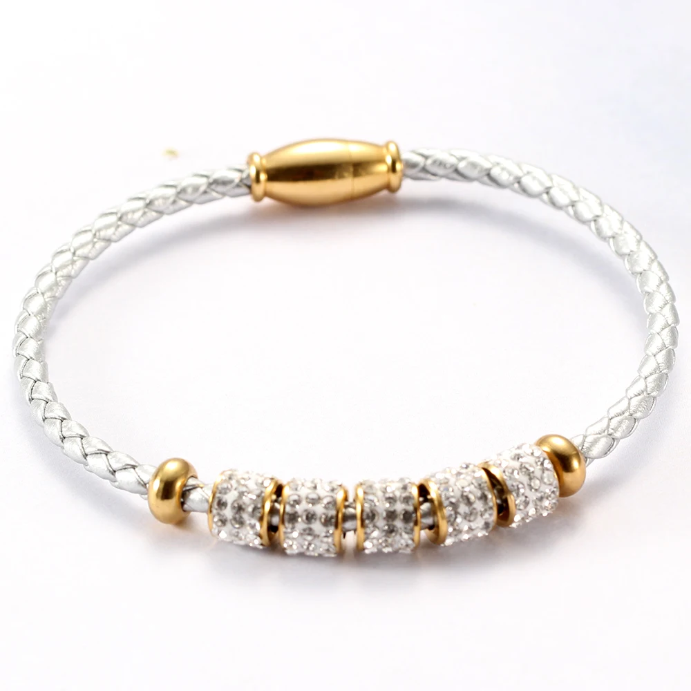 Модное женское ювелирное изделие, кожаный шнур, браслет из нержавеющей стали, браслет с шармами из нержавеющей стали