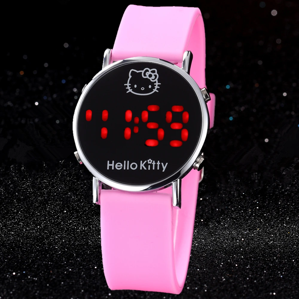 Новинка 2019, красные часы Hello Kitty для детей, детские наручные часы с мультипликационным принтом, спортивные часы, повседневные светодиодные цифровые часы