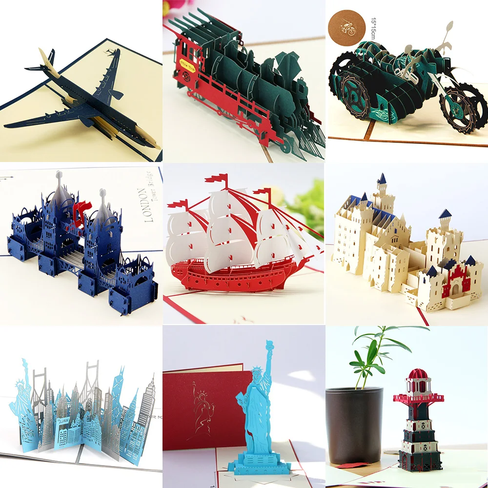3D открытка с выдвижными приглашениями, 3D бумажные поздравительные открытки с изображением всемирных аттракционов на день рождения, 3D туристическая открытка, Подарочная открытка с изображением даты для мальчиков