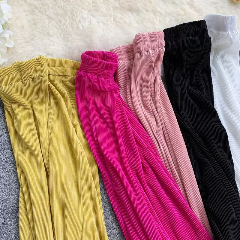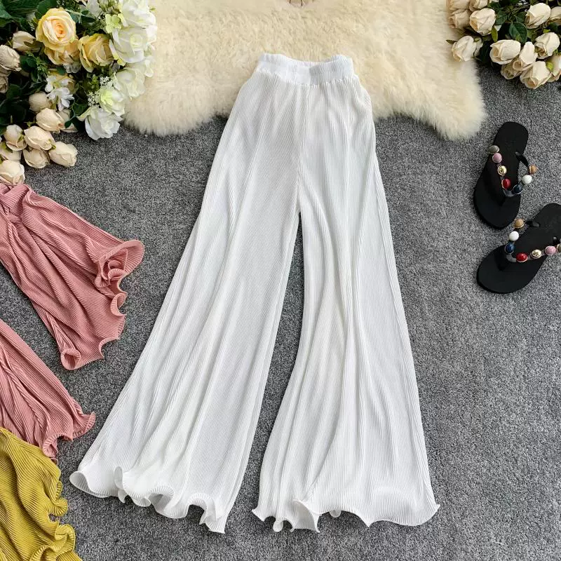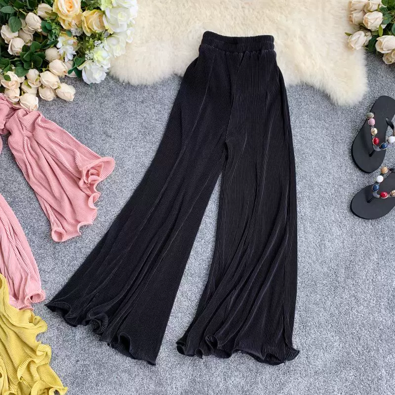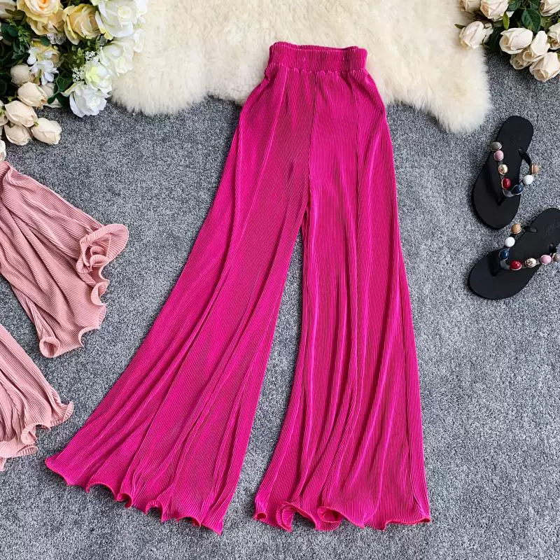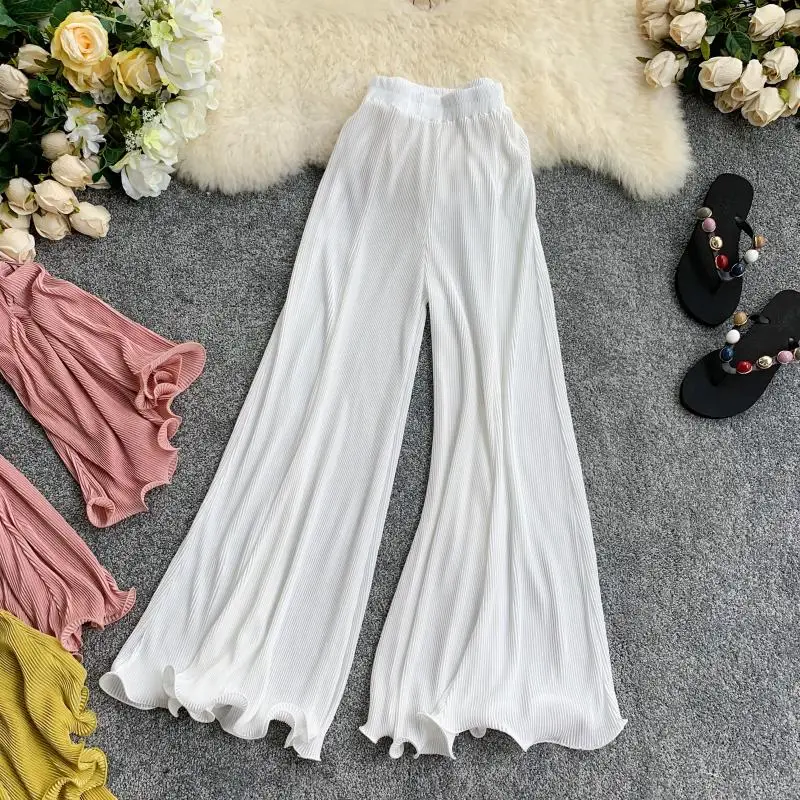Брюки женские широкие в стиле ретро, повседневные однотонные свободные штаны с эластичным поясом, брюки-клеш с завышенной талией, лето 2020