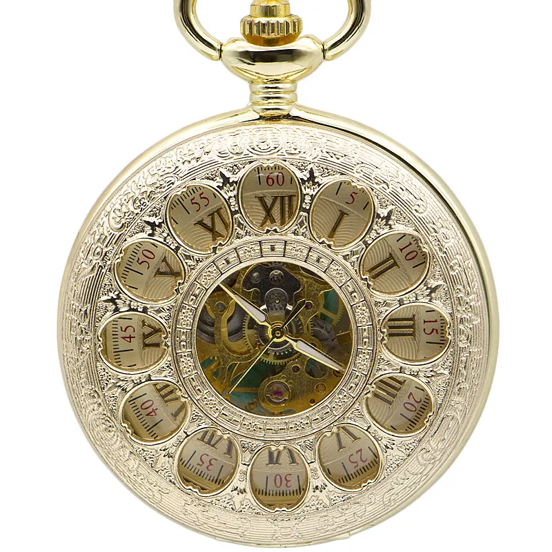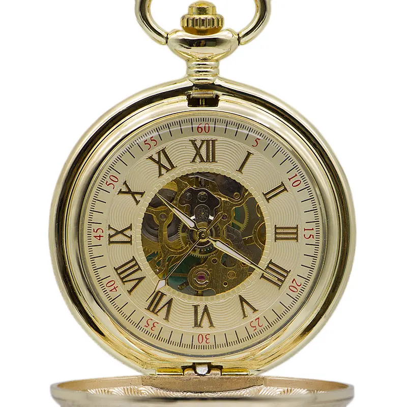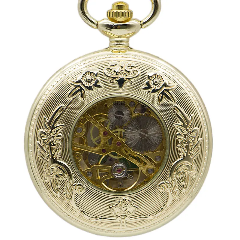 Полностью Золотые механические карманные часы с полыми цветами ручная работа ретро унисекс изысканные римские цифры с цепочкой на брелок PJX1371