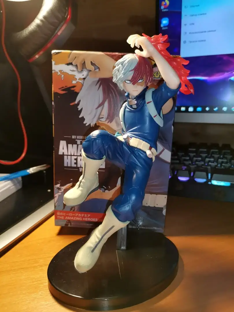 Наконец то мне пришёл Тодороке :) Сейчас поясню почему 4 звезды Во первых коробочка для фигурки пришла чуть помятая, но скорее всего это её помяли в процессе транспортировки:< Во вторых фигурка пришла с потёртостями в некоторых местах, но так как эта фигурка досталась мне за 400 с лишним рублей то большего я не ожидала(продавец был очень вежлив и отвечал быстро) Так как это подарок моему другу, то надеюсь эму понравиться☺️