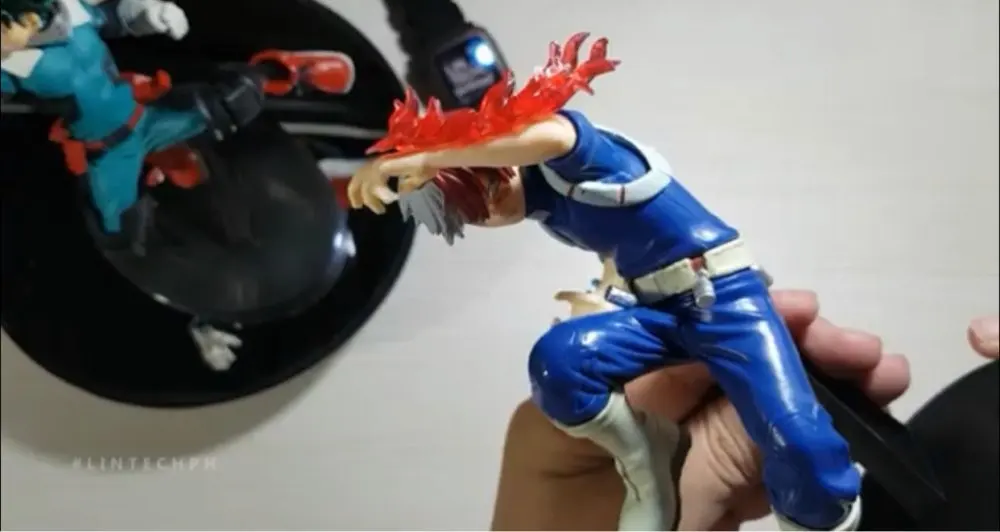 К сожалению, статуэтка не была в Военном Стиле, и я обнаружила часть пламени на порезе руки, а верхний слой слегка поврежден и немного на одной стороне. С помощью клея я решился наклеить пламя на руку и, к сожалению, часть не очень видна. Настоятельно рекомендуем вам положить пузырчатую пленку и жесткую упаковку для ремонта статуэтки.